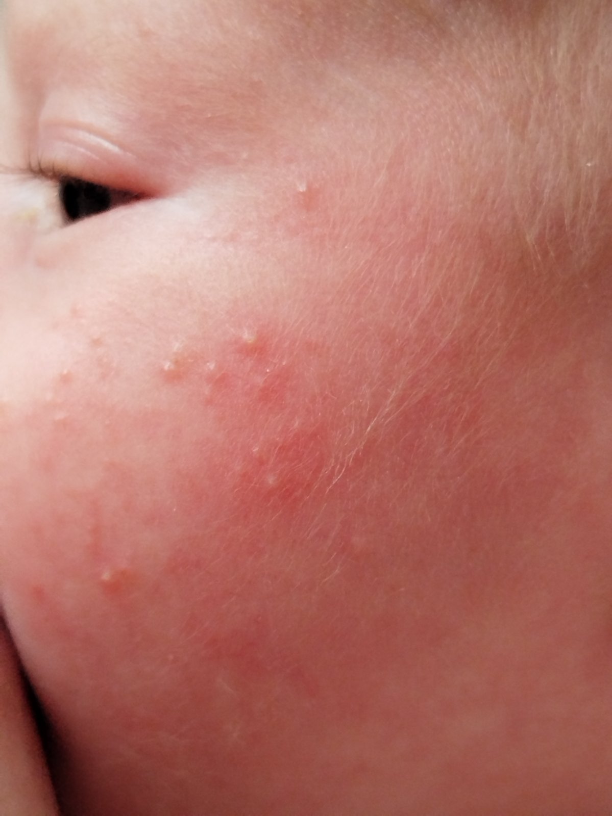 Ahojte vie mi niekto poradiť? Pediatrička najskôr že to je novorodenecké akné lebo tak to vyzeralo ale potom sa to extrémne zhoršilo tak zobrala ster na batérie či čo a že negatívne no dala nám holtov krém ktorý to síce stiahol ale vidím že sa stále robia nové pupáčiky na miestach kde ešte neboli a príde mi že to má teraz také drobné ako krupička.