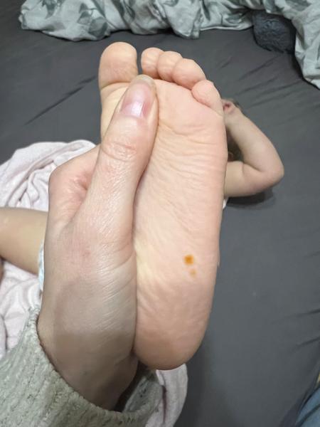 Trochu som googlila v angličtine a vraj to spôsobuje bzdocha. Fľak zmizne. Neboli, nesvrbi. U nás to sedí. Dnes som na ňu doma stúpila papučou, ale dcéra doma chodi väčšinou len v ponožkách, …