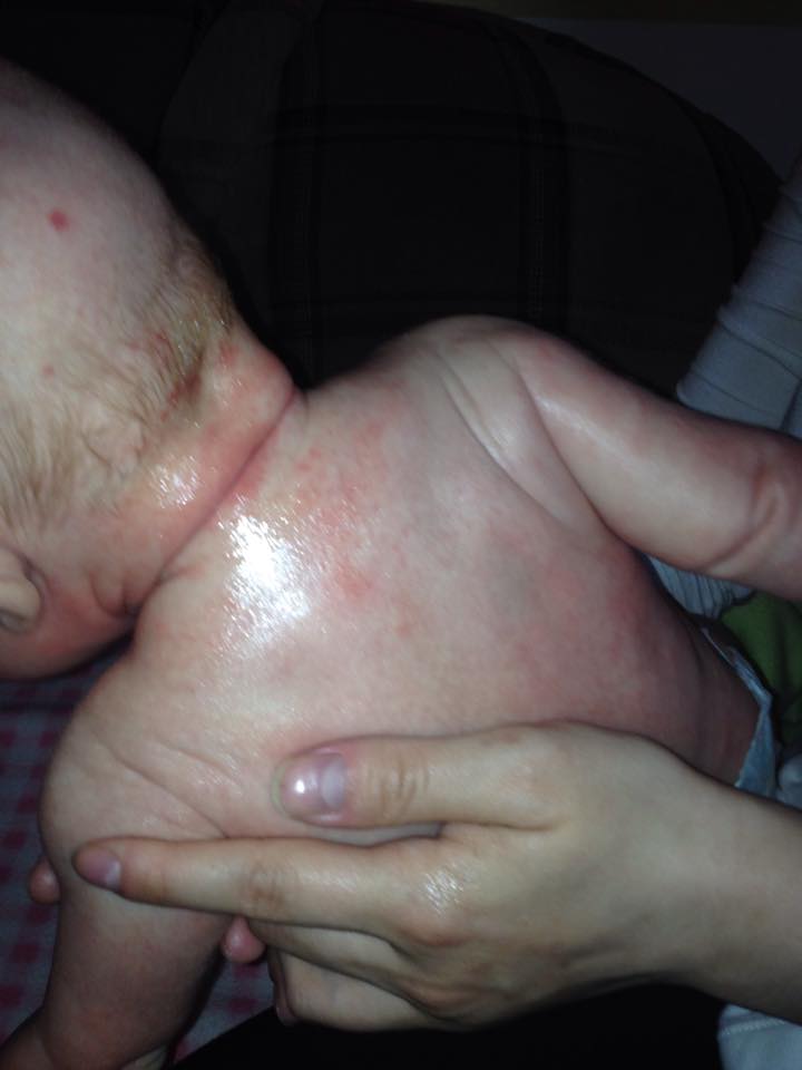 Osypaná tvárička kojeného 7 týždňového bábätka