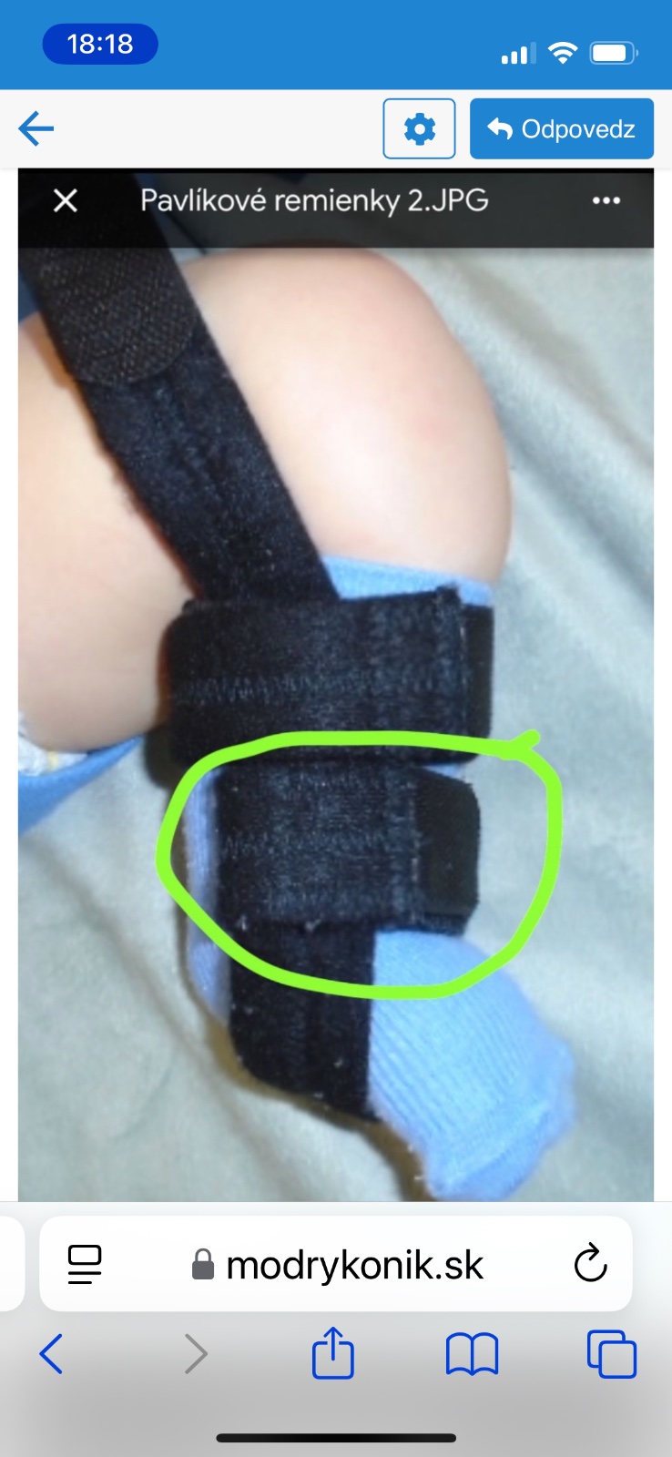 Ahojte, chcela som sa opytat, ci ma niektora z vas skusenost s Pavlikovymi remencami. Nam ich doktor nasadil minuly tyzden.😝 Rada by som sa opytala, ako to vase deticky znasali? Ako dlho ste sa s remienkami trapili? Tie remienky, ktore mame su vyrobene v Neoprote a pripadaju mi dost nekvalitne. Su z takych tenkych kozenych remienkov a malickej vedie popruh cez brusko. Citala som vsak, ze by to tak nemalo byt a remienok by mal viest cez hrud. Nedate mi nejaky tip na vyrobcu, ktory by vedel remienky urobit kvalitnejsie? Dakujem za kazdu radu!