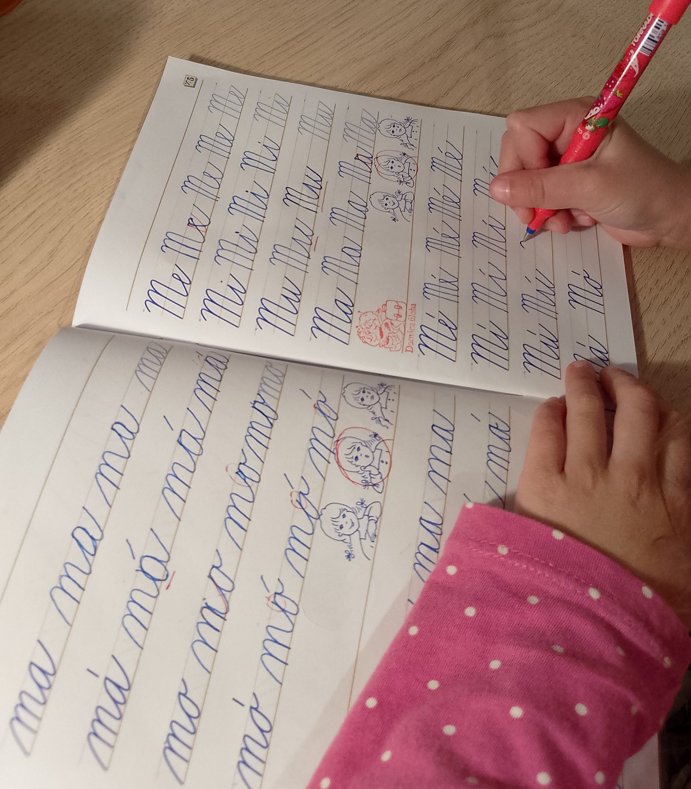 Učiteľka ju vychvalila,že patrí medzi najlepších,z hľadiska písania,čítania,písomku mala bez jednej chyby....ale medaila nikde