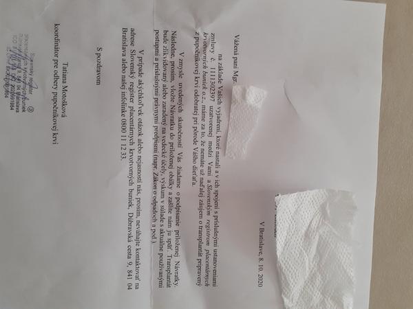 Mame uskladnenu pupocnikovu krv pre obe deti. Platim pravidelne kazdy rok skladne (u nas to je cca. 20 eur, pretoze to bolo uz davno) a zaujimalo by ma, co ste robili dalej. Na vysledkoch o odbere je napriklad uvedene, ze mnozstvo je postacujuce na 20 kg hmotnosti dietata a moje ma uz 30 kg, dalsie ma uz vyse 50 kg a pupocnikovu krv odobratu pre max. 30 kg dieta. Realne uz asi nie je ziadna moznost pre moje deti tuto krv vyuzit. Je mozne krv darovat do verejnej banky? Ako ste to riesili, ked deti vyrastli? Na zmluve je vypovedna doba - mozem ju zrusit a krv asi zlikviduju ale to zatial nechcem.