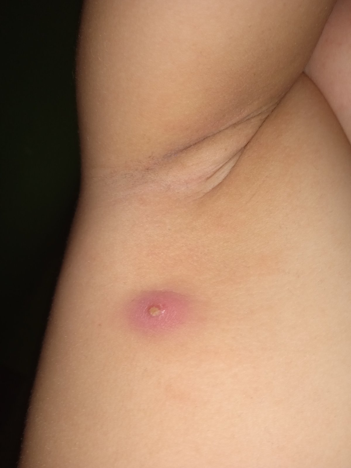 to ma zapalene. zrejme sa mu tam trelo oblecenie, rucicka o seba a vznikol mu vriedok. pojde to zrejme vytlacit. lekar vam zrejme nato nic extra neda.