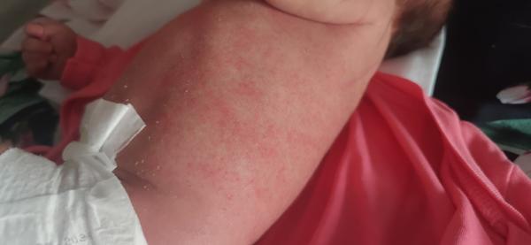 @motogirl699 Tak to moze byt reakcia od prasku, toho, co si zjedla, plienka..Hadanie... Lekar je najistejsia volba.