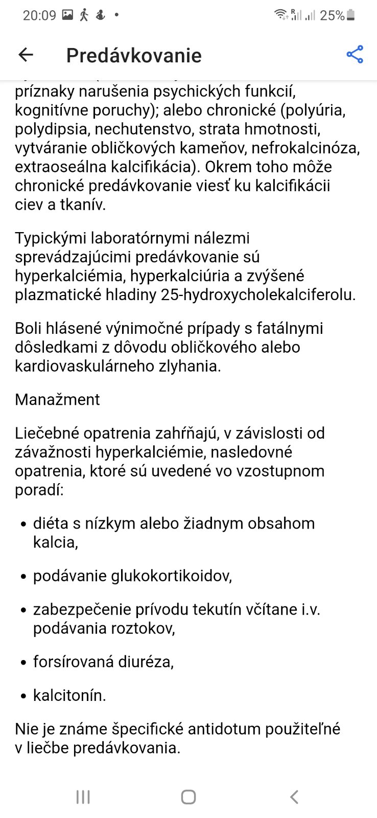 @miskafilipkovab celkom tak to nie je, ako vsetci pisu. Maly 4rocny vypil celu flasu devit. Bol trochu malatny potom, nezvracal. Prisla som na to az neskor ale. Na nar.toxikol nam neodporucili nic, kedze to vypil pred par dnami. Ze zajst za obvodnou. Ta nas poslala na odber, aby zistili hladinu d3 a sono obliciek. Zakazali jest vsetko mliecne na mesiac aspon. Kontrola o mesiac. Ide o to, ze vitamin d sa nevyluci mocom, ale skladuje v tele. Prijimanim vapnika sa mozu vytvorit kalcifikaty v oblickach a inde, tie sa kontroluju. Hladinu mal ozaj extremne vysoku, mliecne nejedol, kalcifikaty kontrolovali po mesiaci, nemal ich. Tiez hladina klesla o polovicu, doktorka bol rada, ze sa to tak znizilo. Potom sme uz nesli. Pol flasky mozno nie je tak vela. Doktori mi to prepocitavali, lebo moze vypit aj niekolkonasobne viac, ako je povolene, ale cela flaska bola strasne vela, to sa ani im nezdalo. Ja by som pre istotu isla dat zmerat hladinu v krvi.
