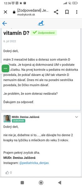 Dcérke 2,5r dávame od narodenia denne 1 kvapku. A budem pokračovať do poradne v 3r, kde sa spýtam pediatričky, čo ďalej.
