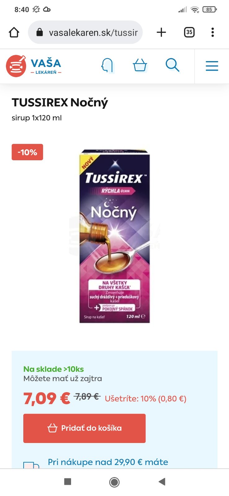 Tusirex nočný sirup pre 16-mesačné dieťa