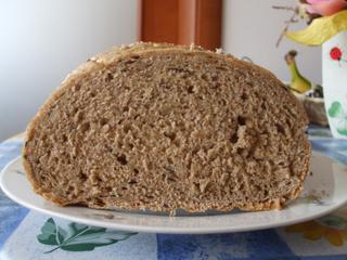 Tak ma napadlo, že pekárničke síce zrejme odzvonilo, ale cesto nemusím vyhadzovať - zrovna kyslo. Spomenula som si na "dobré rady" kucháriek z varechy, že nechávajú cesto na chlieb kysnúť od večera do rána. Šupla som ho do misky, zabalila do deky a nechala tak. Ráno bolo cesto krásne nakysnuté. Premiesila som ho, ale bolo dosť tuhé, lebo som použila aj ražnú múku a tá je dosť hutná 😝 Tak som si myslela, že z toho nič nebude. Dala som ho do rímskeho hrnca (opäť dobrá rada kucháriek z varechy 😀 ) a nechala kysnúť, kým upracem - cca 40 minút. Potom šupla do trúby a za hodinu bol chlebík hotový. Bola som milo prekvapená - je fan-tas-tic-ký !! Nepraskol, má krásny tvar a je mäkučký ako z obchodu! Takže dievčatá, vrelo odporúčam metódu - večer zamiesiť a ráno piecť !!