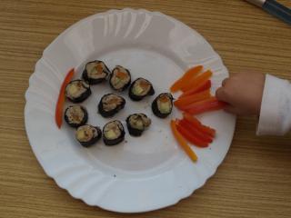 @rancuzkaf ked u nas sa kolaciky velmi nejedia a potom by som to len ja z lutosti aby som nevyhodila zjedla... Ale vyskusam ten kolac urobit na velku noc ako veniec. Teraz ma chytil osial a piekla som ako diva tak som to trochu aj prehnala. Este chcem pre seba a Oli urobit nejake raw kolaciky. Dnes som prvy krat robila raw sushi a velmi mi to chutilo tak som sa rozhodla ze si aj na vianoce urobim na veceru a k tomu este taky salat. Napisem aj recepty... A kolaciky budem robit take ze pomeliem susene ovocie s orieskami, urobim z toho gulicky a obalim v niecom. Chcem niekolko kombinacii. Zjtra rano si to asi namocim a vecer budem vyrabat. Chcela som aj s kakaovych bobov urobit polevu ale nemam ich ako pomliet. Skusim este susedy sa opytat ci nemaju mlyncek na kavu, to by bolo najidealnejsie na nom ich pomliet. Pridavam este foto sushi 😀 a jednu aj ako Olivka kradne rybke chvost