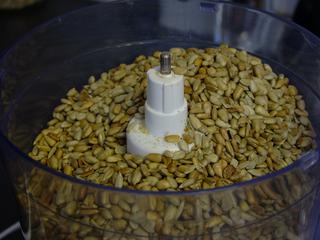 dáme do mixéra a mixujeme, vypneme, zoškrabeme zo stien a zase mixujeme, takto to opakujeme, až sa vytvorí hmota ako maslo, na koniec pre ulahčenie mixovania pridáme ešte trocha oleja a riadne premixujeme