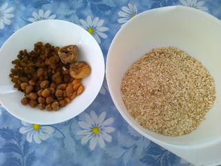 150g suseneho ovocia a orechov nasekat na drobne kusky (hrozienka netreba)