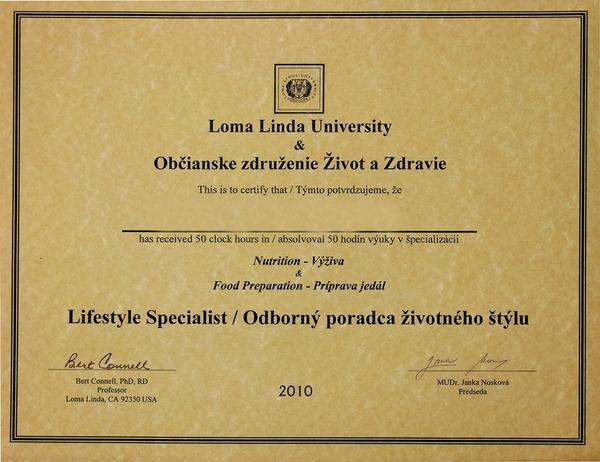 je to vlastne odborný garant lektorov OZ Život a zdravie, lektori sú odborníci, ale aj veľa laikov (dobrovoľníci s iným zamestnaním), ktorých LLU školí v 4 oblastiach: výživa - príprava jedál, výživa teória, pohyb a psychika, v prílohe je napr. certifikát z jedného cyklu.