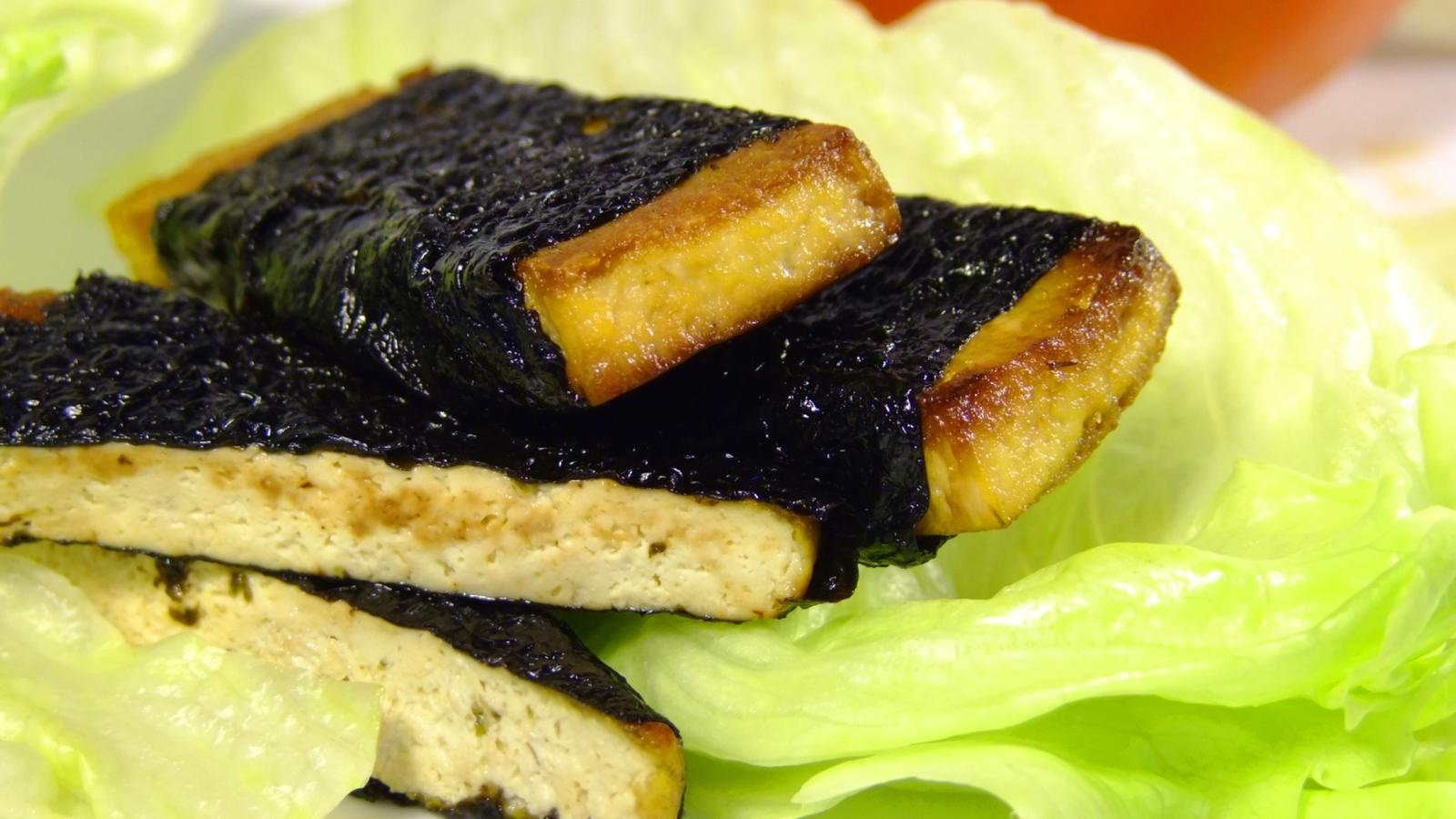 Zaujímavý recept, kde sa spája výrazná chuť Nori a Shoyu s menej výrazným (neutrálnym) tofu. Spolu je to akurát. Vhodne (nielen) na Vianoce pre vegetariánov, ktorí majú radi rybaciu chuť. (Ako je to vlastne: chutia riasy od rýb, alebo ryby od rias? 🙂 ).