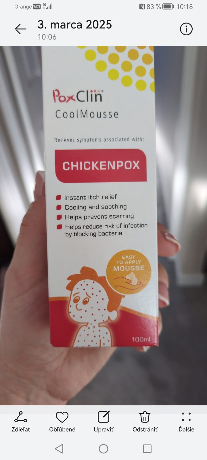 Ja odporúčam ten sprej Pox,moja bola vysypana doslova na každom centimetri tela,a toto je taká chladiva pena. Po krátkom kúpeli v hypermangane som ju s tým celú nasprejovala, zmierni to svrbenie,neostala jej ani jedna jazva
