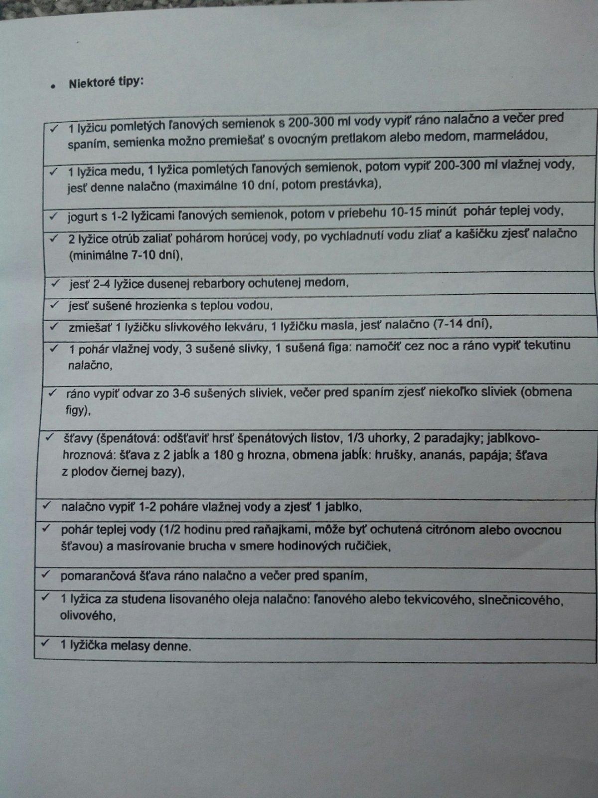 Zaradit viac cerstvej zeleniny, vsetky druhy ovocia, vlaknina, vyvar s ovsenych vlociek a take. Skusit kozie mlieko. Vela pit, a pripadne je aj nejaky sirup co urobi redsiu stolicu, no nepamatam si nazov, je na predpis od obvodneho lekara, nie je prehanadlo ani navykovi. A na konecnik som kupila masticku.