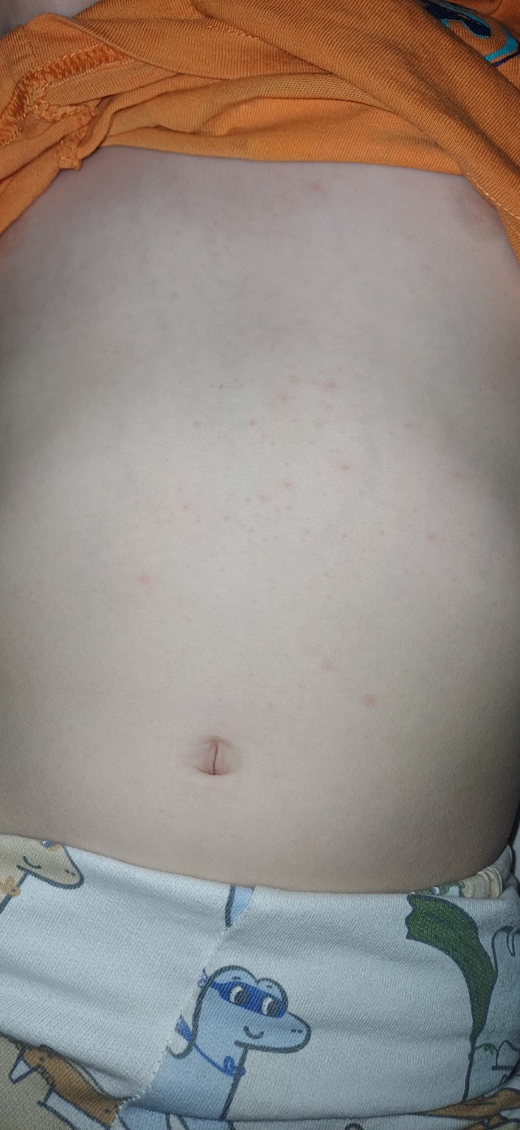 Syn mal pred mesiacom taký výsyp, len na hrudníku a začínalo to tak, ako Tvojmu, ale potom bolo vyrážok stále viac... Dr zhodnotila, že alergia na jedlo... No nakoniec sa zistilo, keďže sa k tomu pridali vysoké horúčky (2 týždne predtým mal zápal priedušiek, čiže atb)... Bola to prebiehajúca infekčná mononukleóza. Zistila sa z odberu krvi u pediatra. Ešte k tomu vysypu, syna svrbeli a zároveň boleli... Fenistil kvapky nepomahali. Museli sme potierať
