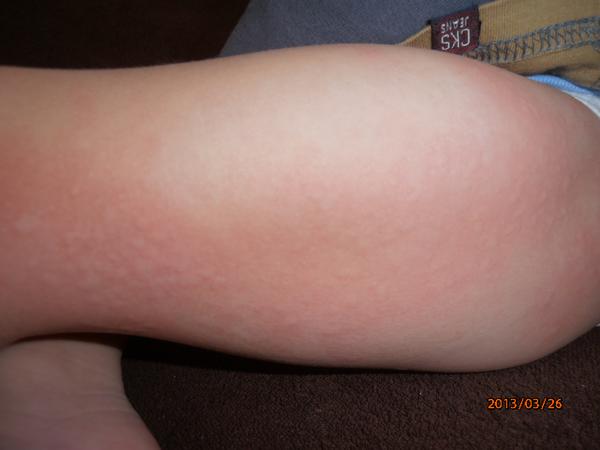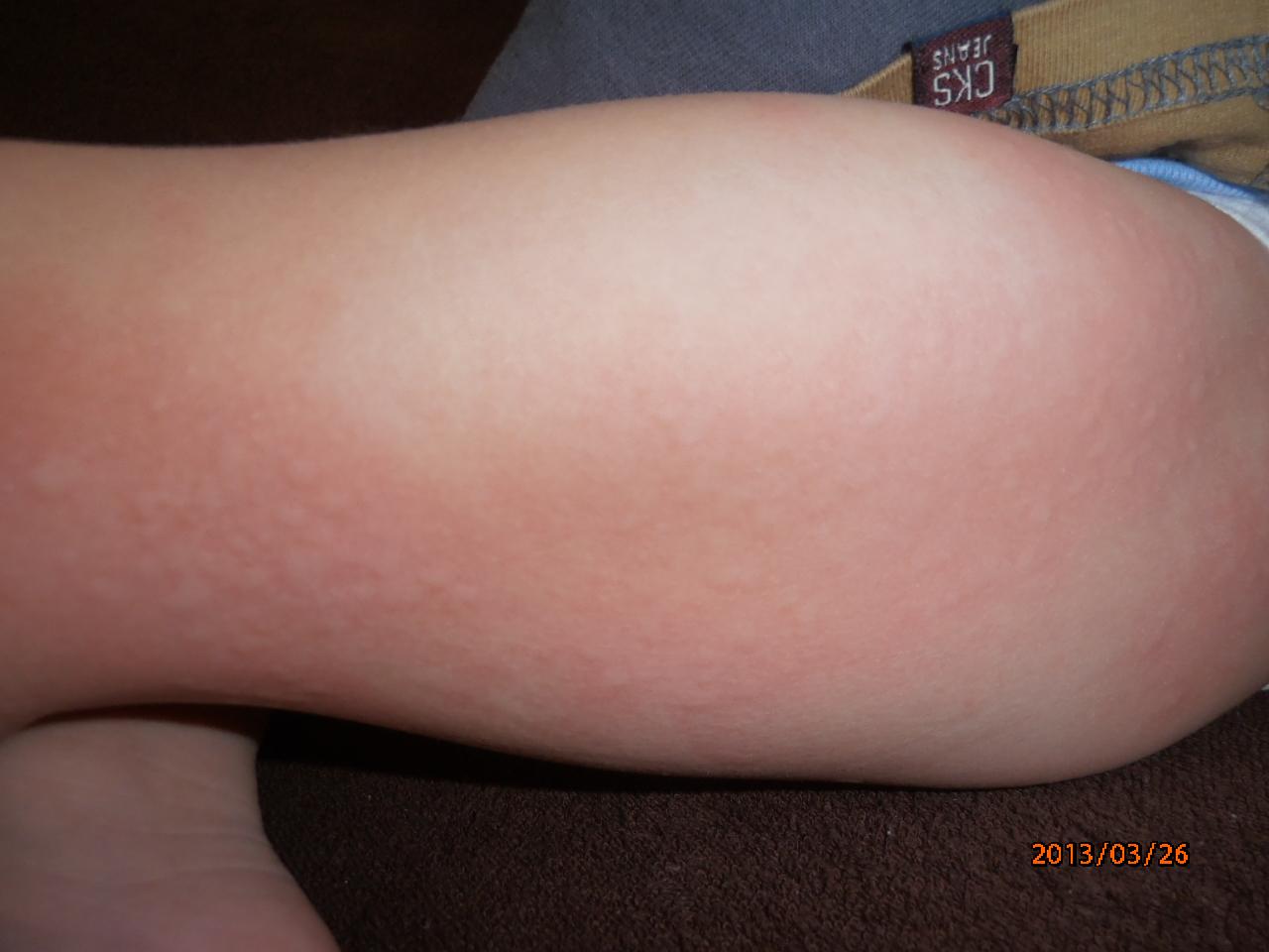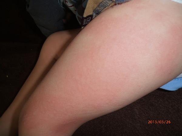 Malej sa niečo také spravilo tiež minulý týždeň, boli to také fliačky na nožičkách (nie po celých , iba niekoľko takých fľakov akoby od žíhlavy- tak ako píšeš) - nikde inde, tiež neviem z čoho to mala, bolo to prvý krát, dala som na to fenistil gél a do rána to nemala.