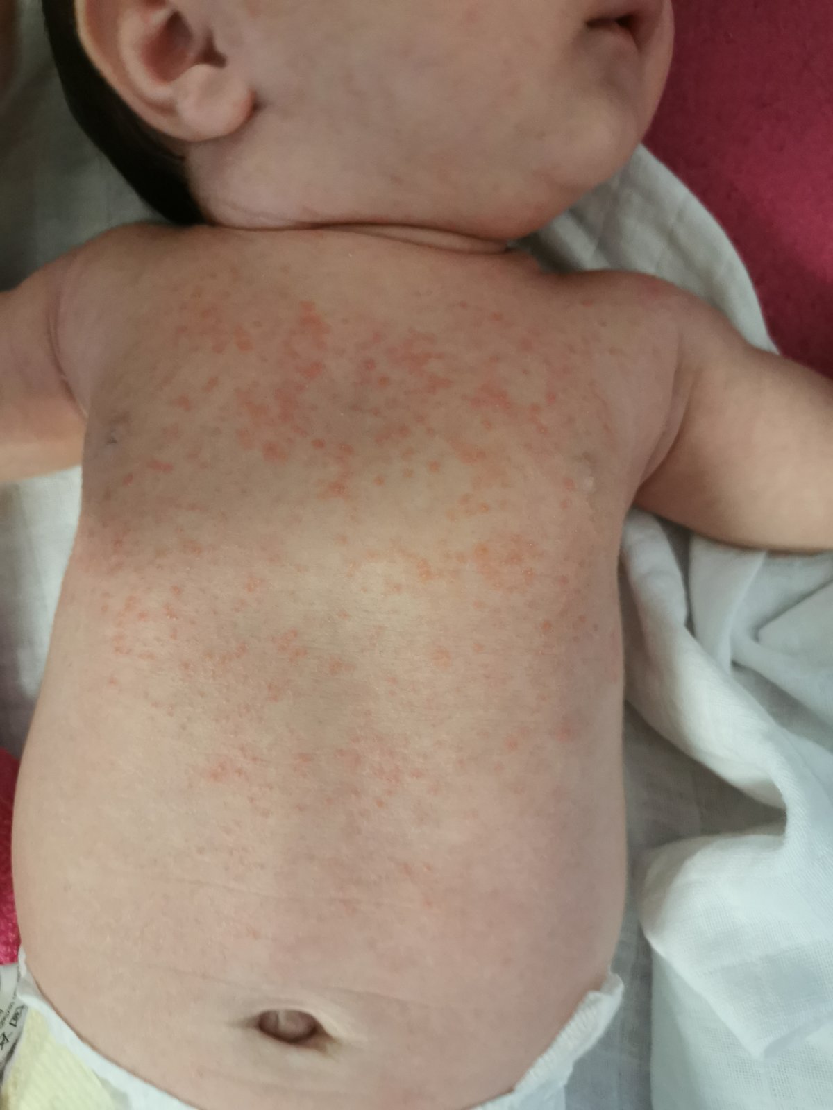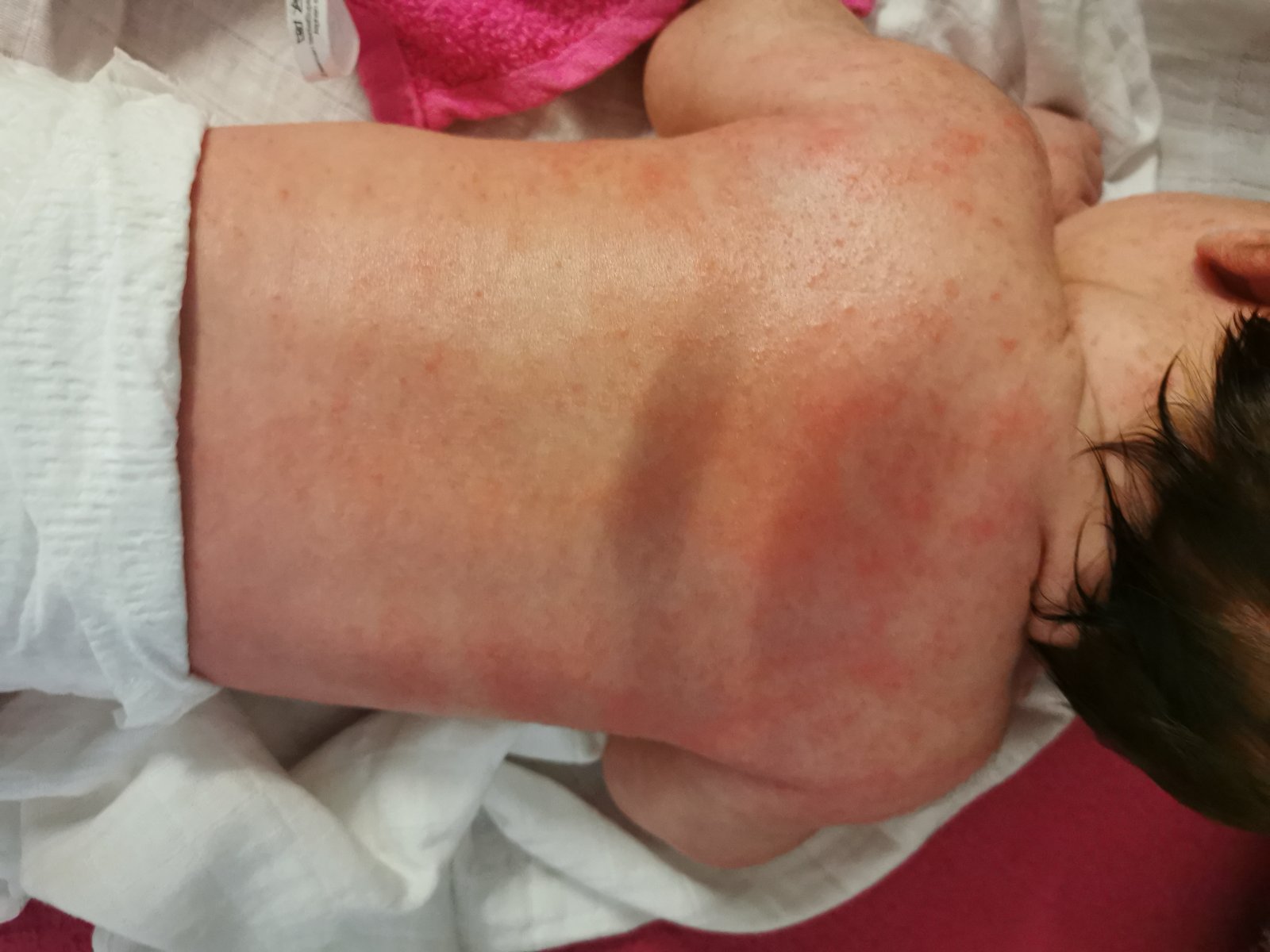 Dobrý deň mam otazku moja mala ma asi od 2, 3 tyzdna vyrážky zacalo to na tvaricke trosku potom sz to ukazalo v hlavicke teraz krk hrud aj chrbatik.... Neviete niekto co by to mohlo bit? Alebo z coho??