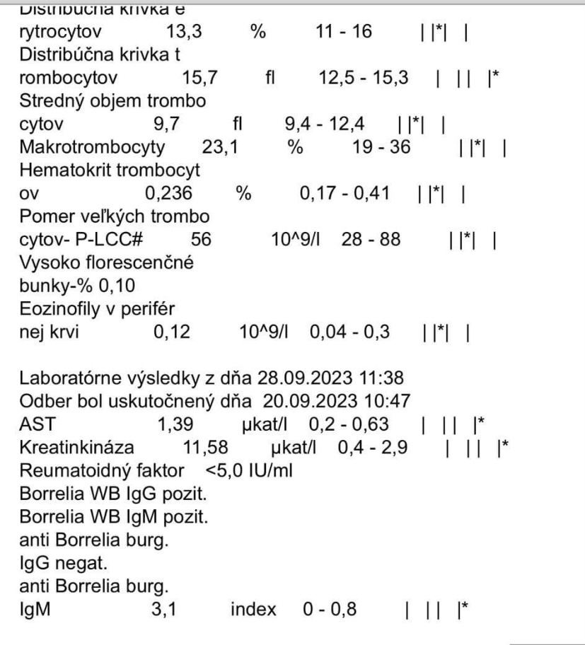 Dobrý vecer chcela by som sa spýtať dcére brali krv pred týždňom dnes nám volala pani doktorka obvodná že mala zle výsledky veľmi zle podotkla ale že bližšie povedať nevie že treba ísť na neurologiu a infekčné dcéra ma 11 eokov mala dávnejšie potvrdenu boleriu nasadila sa liečba boleria klesla o niečo ale stále je vyššia ako by mala byt poslala nám aj výsledky z krvi sme bezradný a veľmi sa bojíme čoby to mohlo spôsobovať vraj boleria nie po mesiaci sa jej krvný obraz zhoršil 10x násobne :( neviete mi niekto z týchto výsledkov povedať niečo viac ? Kým sa dozvieme odpoved u lekárov čakáme na objednanie ďakujem :(