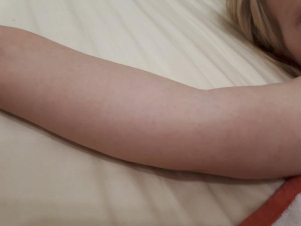 V utorok sa jej zacali po tele vyhadzovat take drobne vyrazky. Myslela som ze je to alergicka reakcia z jedla (vypila stavu z cerstvo nastruhanej salatovej uhorky, dcerka je alergik, ale salat.uhorka jej ako taka nerobi zle). 2.den vypila trosku cistu paradajkovu stavu na obed. Uz po obede som si vsimla ako sa vyrazky rozsiruju smerom na chrbatik, brusko. Do dnes to preslo na ruky, lica, vo vlaskoch, brusko, zahyby okolo cikulky a ide to ku chodidlam.Kozna tvrdi ze to je nejake virusove ochorenie. Nesvrbi ju to.No po kazdom jedle jej velmi scervenaju licka, az tak do fialova,velke cervene flaky. Potom to prejde. Pripajam foto,v skutocnosti je to horsie ako na foto.