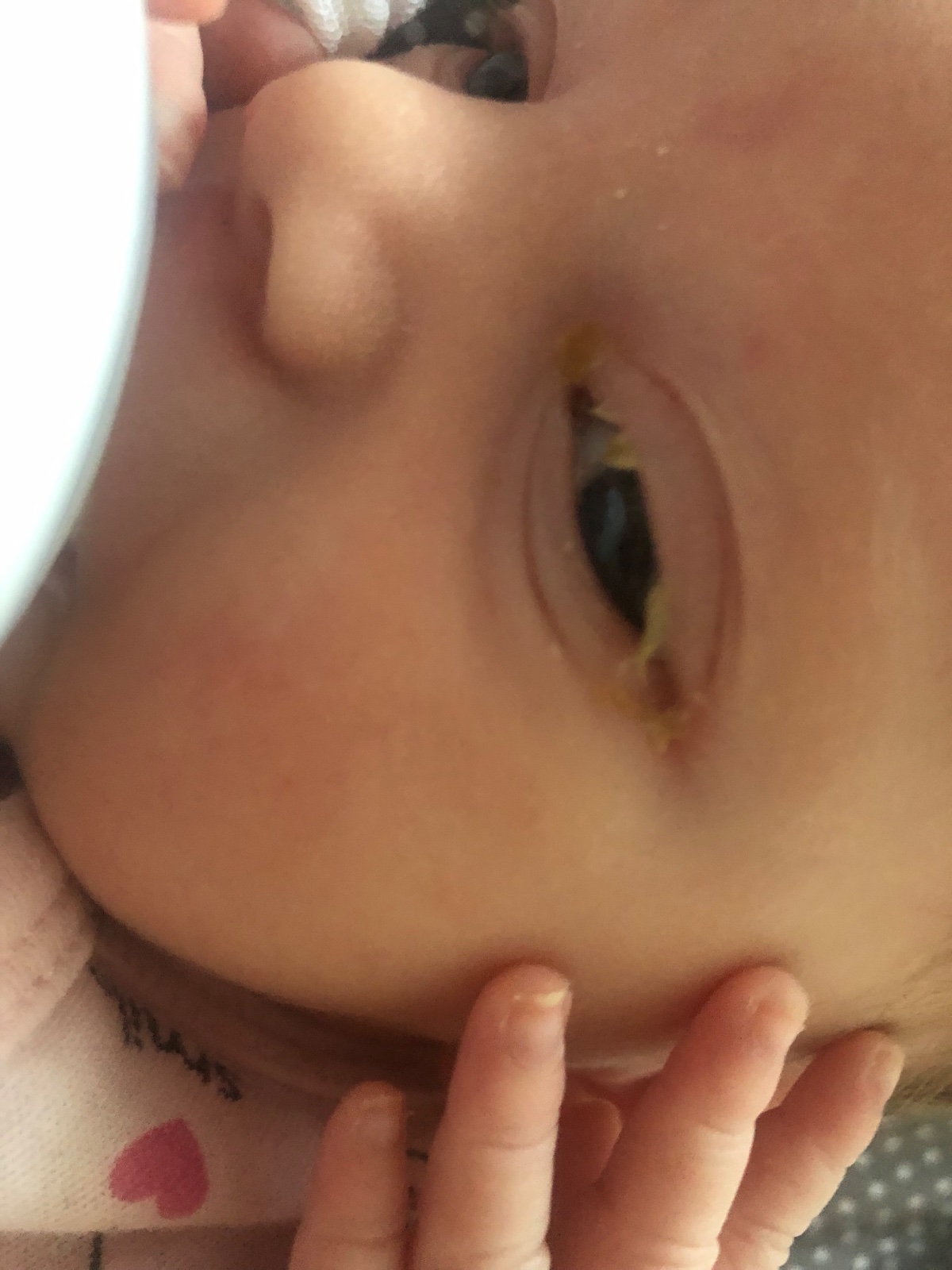 @sandricka11 je to hnis z ocneho kanalika, masirovat pri koreni nosa, mozno sa to uvolni, vytierat repikom a cistou vodou a ist na ocne, pytat papier od pediatra. Niektori pediatri aj predpisu atb kvapky a neposielaju na ocne.