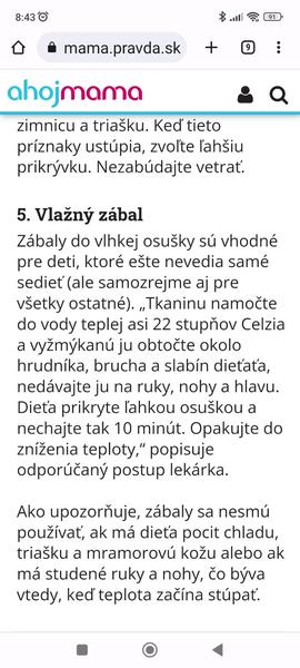 @dadka128 boli sme v nemocnici keď mal malý 2 mesiace a 3 dni mi kázali dávat zábaly na hrudník a to sa tam za tie 3 dni vystriedalo viacero sestričiek a doktorov. Dávam tak doteraz, vždy zabalím studenú gumennu fľašu do uteráku a tak priložím. Neviem teda čo je naozaj správne ale deťom toto zaberá.