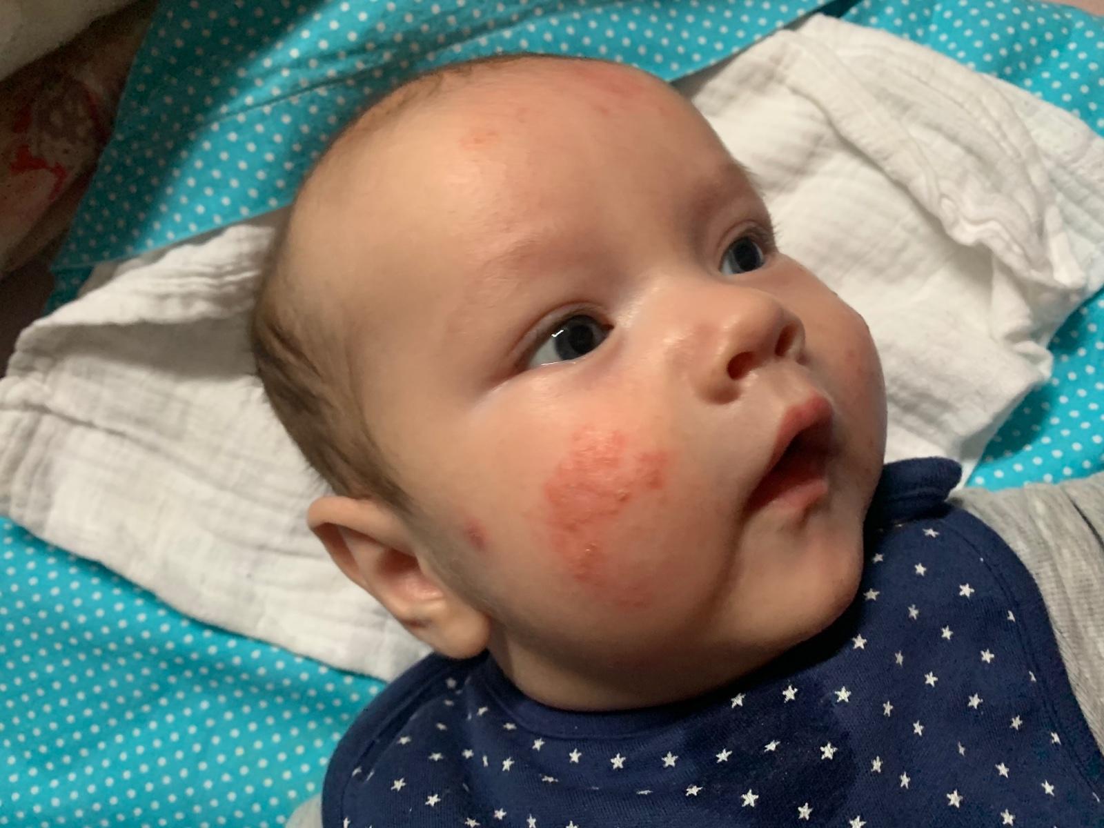 Začervenané vyrážky na líčkach trojmesačného synčeka