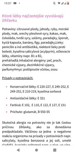 @mirecka15 tam mala maximalne obmedzenia u nas zihlavku vyvolal dzus dodnes si ho pamatam karotka, banan, jablko sklenena flasa lidl 😃 boli sme v nemocnici, viem ze jej nic nekorenili, ziadne mliecne(moje dieta mliekoholik) ovocie zeleninu tiez vo velkom vysadili. Bola viacmenej na diete ako ked mas problem so zaludkom, a postupne pridavali. Skusili zeleninovu polievku, zemiakovu kasu a pridavalo sa postupne ako ked zavadzas prikrm. U nas to bolo o nejakom konzervante v tom dzuse. Inak si to vysvetlit neviem kedze vsetko jedava nema z nicoho reakciu. Skus si mozno premietnut co papal podla toho. Mozno to nebude reakcia na nejaky vysledny produkt ale konzervant. Ja by som skusila den takej diety a postup e skusat co to spravi. A ist na alergologiu, my sme uz neboli nakolko sa nam neopakovala