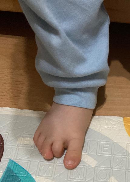 @jumama no presne on bol tiež veľké bábätko keď sa narodil, ja som to registrovala už od narodenia že ten druhý prst mu ako keby trošku nižšie rastie, ale nikto to neriešil a ja som si myslela, že už keď sa postaví a začne chodiť že ten prstík zaťaží a pekne sa vyrovná. No on ho ukladá pod ostatné 😌