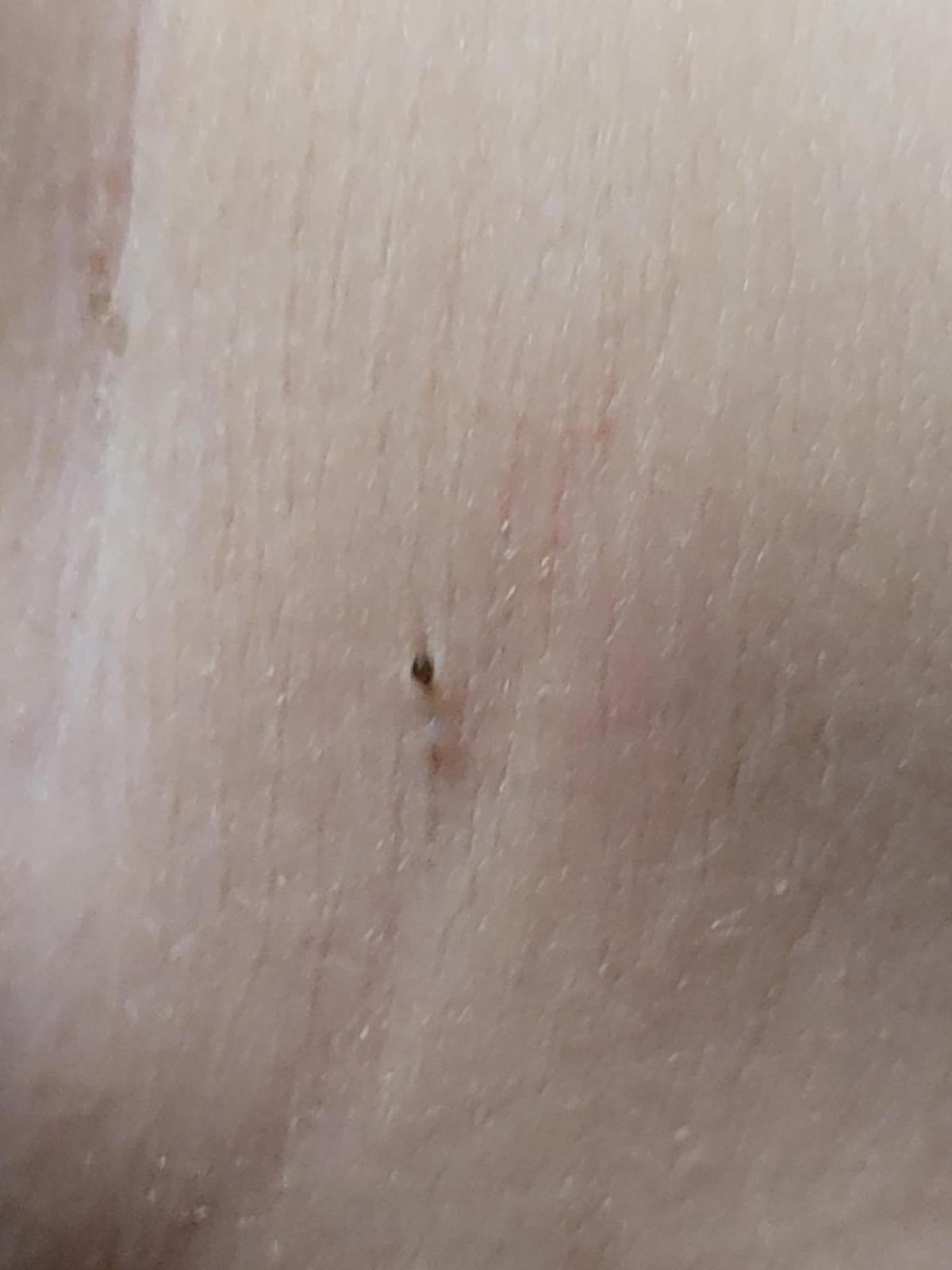 Vieš si to priblížiť a zväčšiť mobilom. Manžel mal malinkého kliešta ako špendlíková hlavička na členku. Takto na pohľad sme tiež nevideli nič, len bodku. Priblížila som to mobilom a videli sme nožičky. Ale toto na tvojej fotke vyzerá podľa mňa inak.