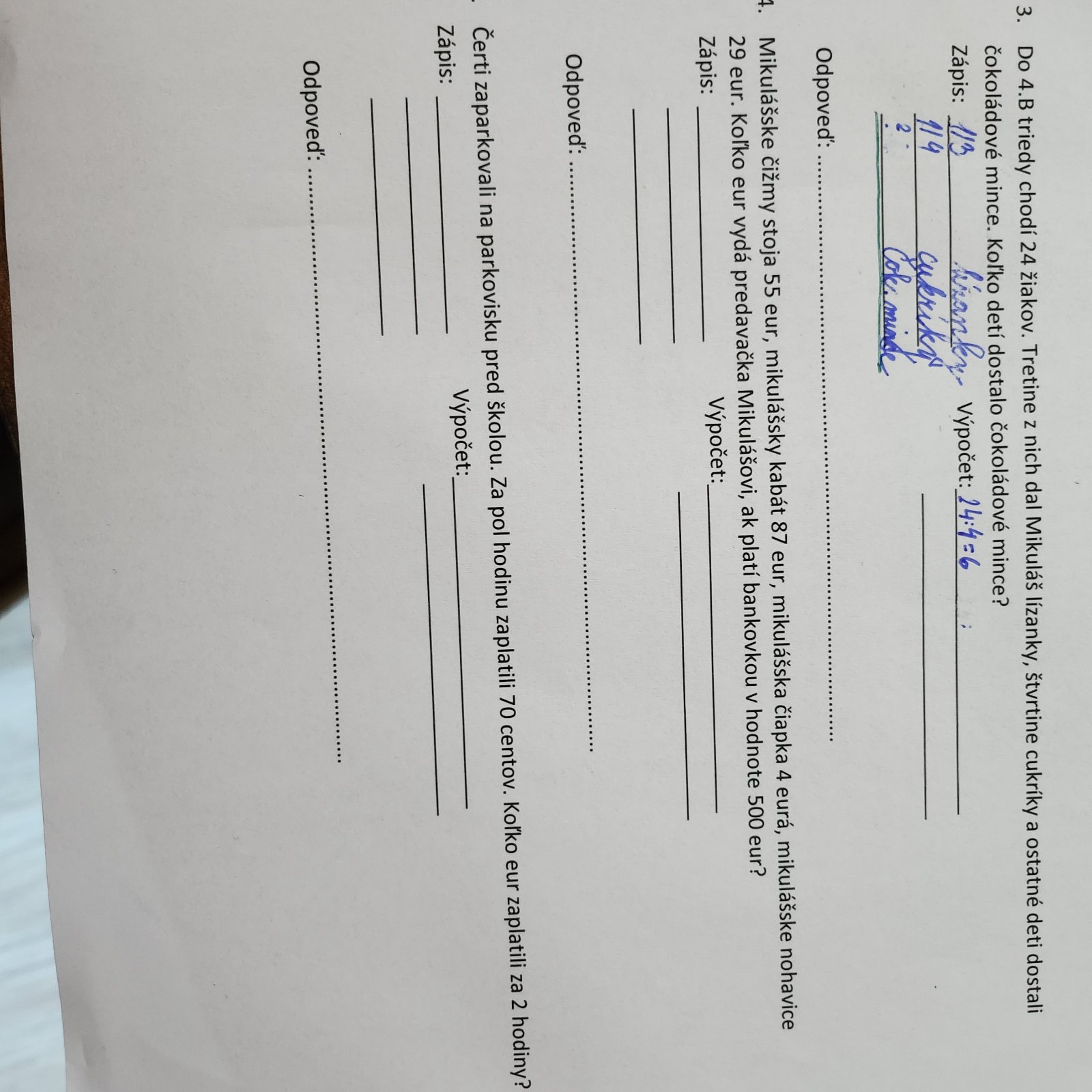 1/4 cukriky, twk napisr 24:4=6