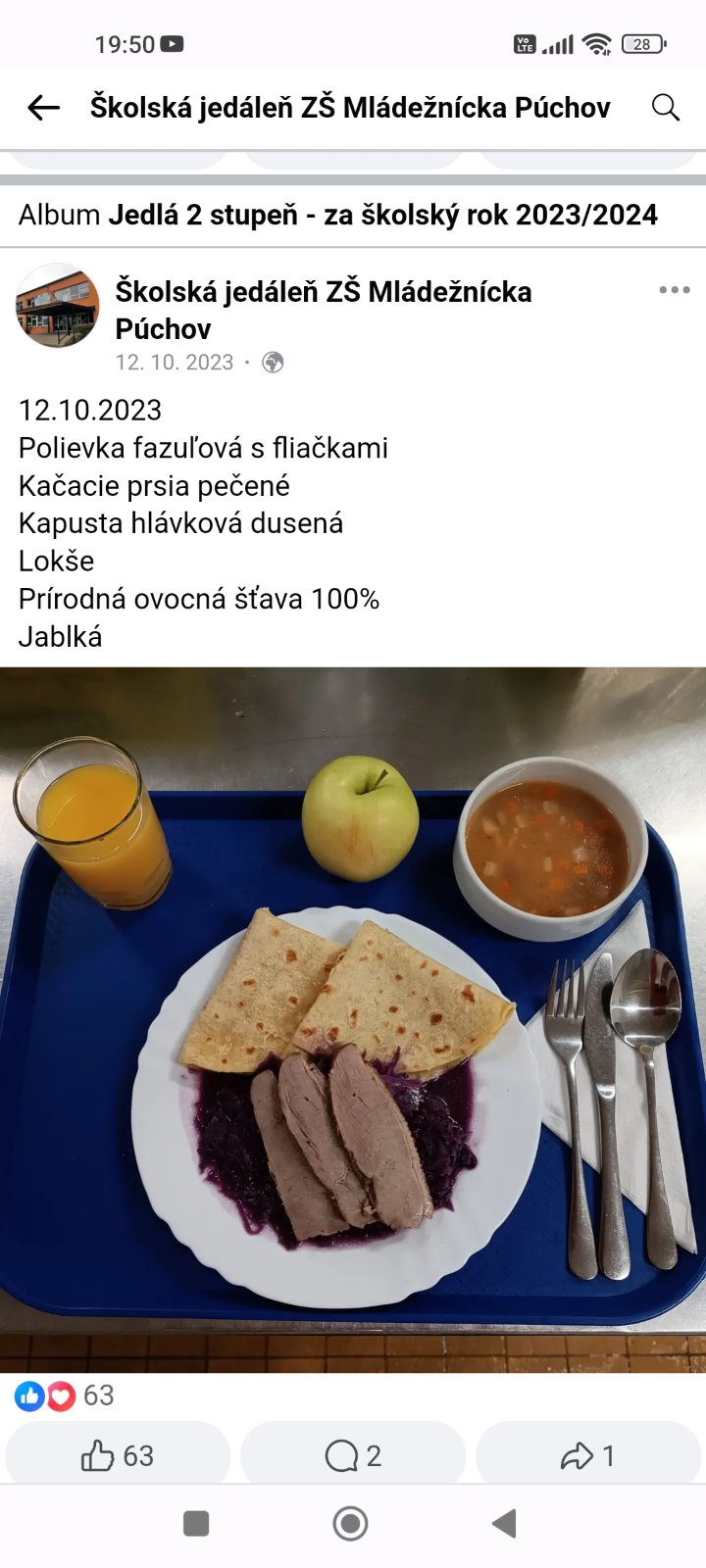 Som u itelkou, stravujem sa v školskej jedálni a poviem vám u nás varia super dnes napríklad kapustnica, chlieb, parené buchty s lekvárom posypka maková, nápoj a dve slivky áno aj oni musia dodržiavať normy takže niekedy je granadír, rizoto atď. .. ale to je tak jeden obed cez týždeň ostatné sú väčšinou mäso a čo má prekvapilo ak je dotácia je viac jogurtov k obedu či nejakých centrálnych tyčiniek alebo ovocia to je tak cca 3-4krat do týždňa 🙂