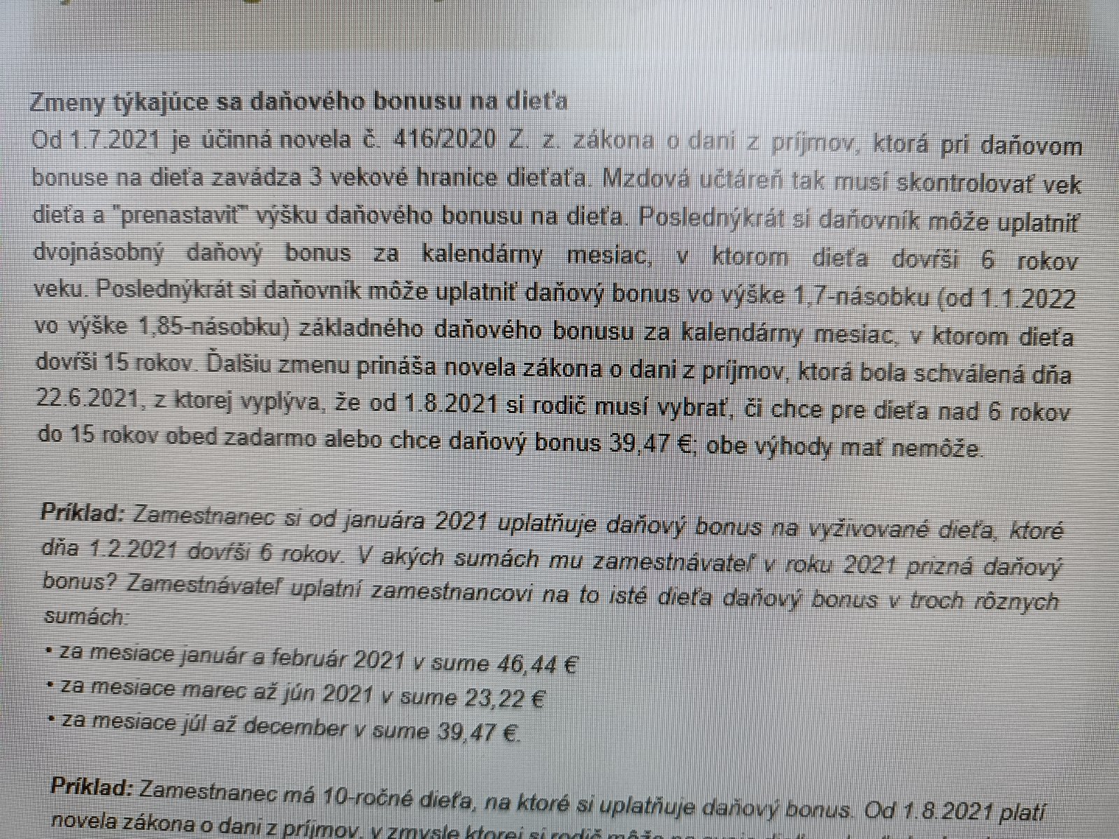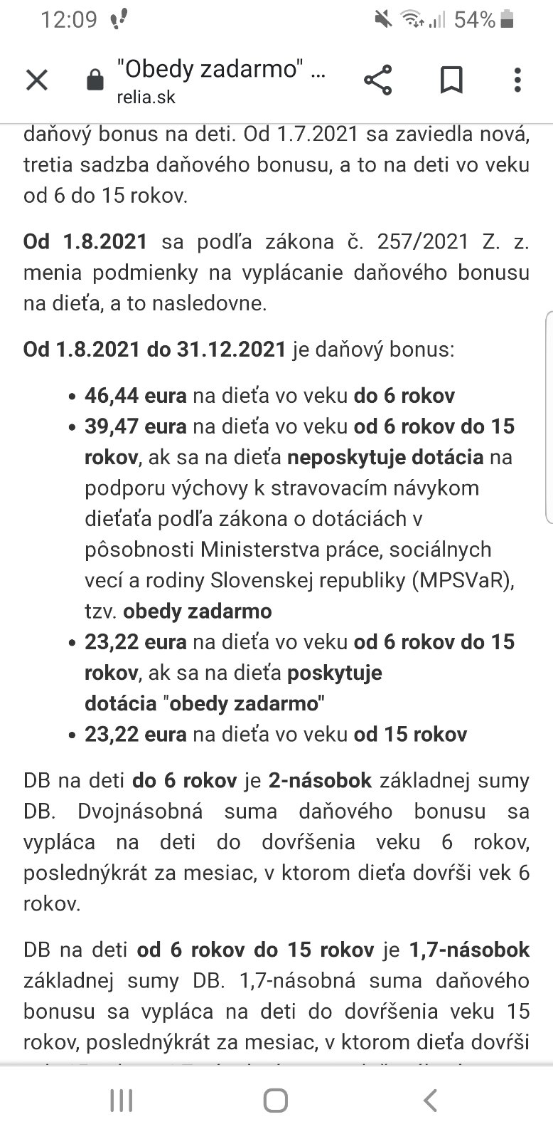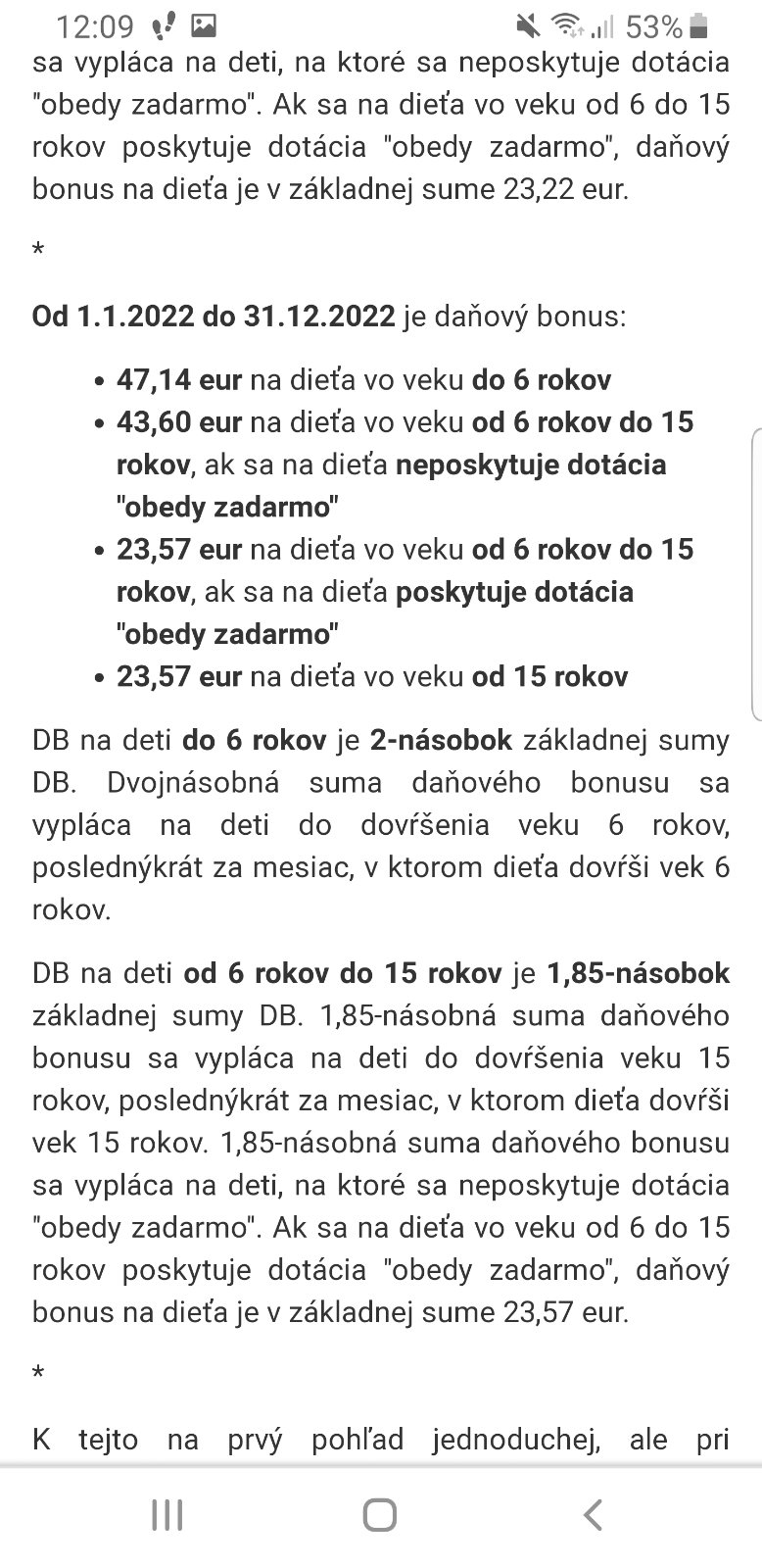 @majusqa77 áno toto som myslela..."neuplatnil si sumu daňového zvýhodnenia"....čo znamená že vôbec, ani v tej pôvodnej ani novej výške. To čo píše Mihál, neviem odkiaľ čerpal. Zvýšený DB je ako kompenzácia za obedy zadarmo. Ak by mala ostať pôvodná výška DB a k tomu aj obedy zadarmo, to by si nechali vsetci. Asi bude dobre počkať na usmernenie FS, a budeme múdrejšie 😁