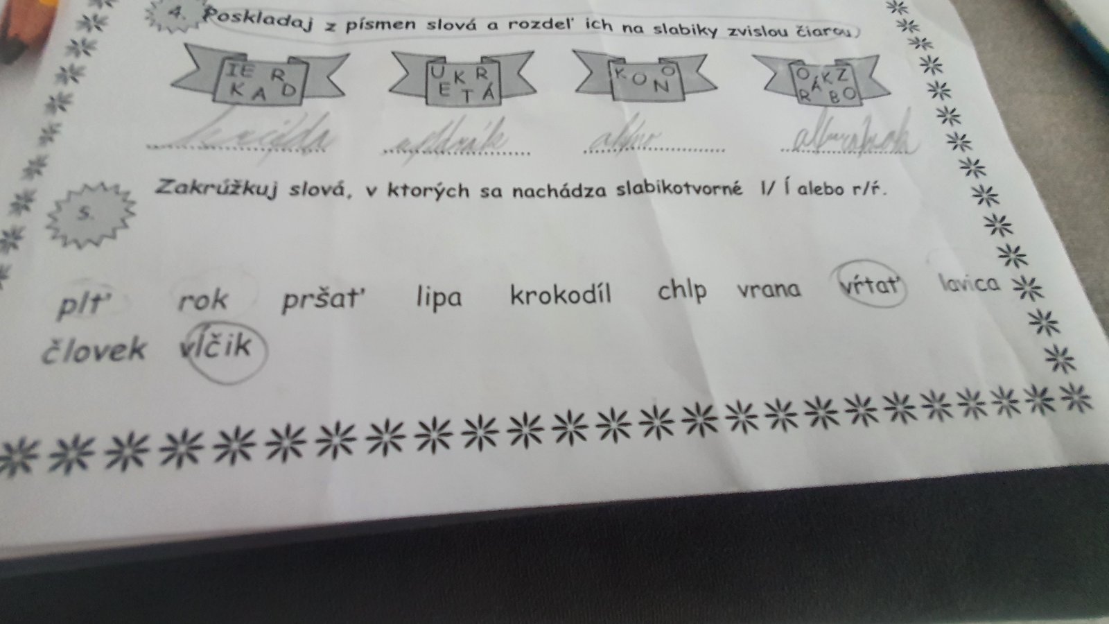 Pomoc s domácou úlohou - slabikotvorné l/ĺ, r/ŕ