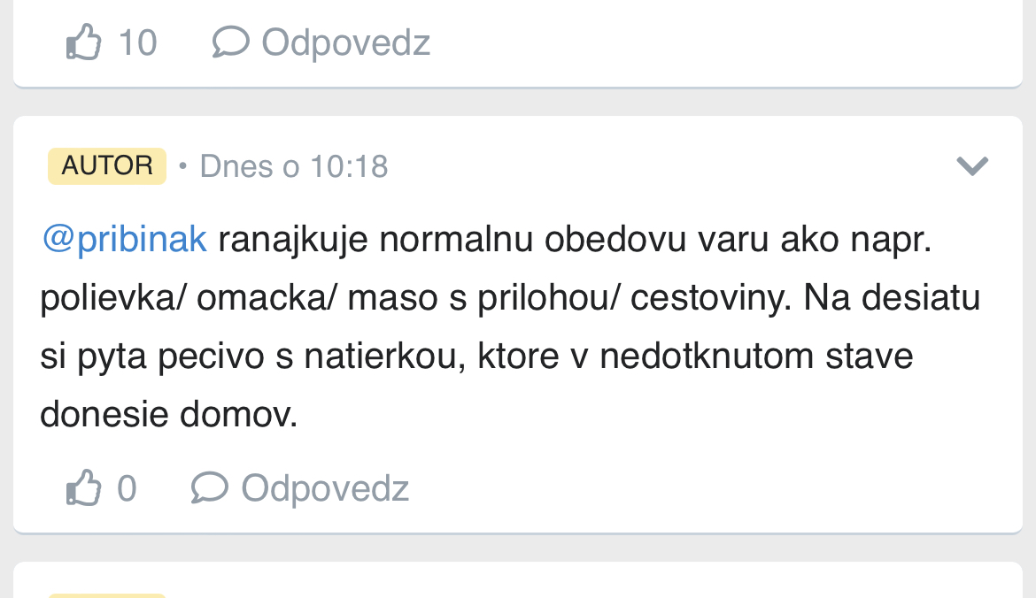 Mile reagujuce, ospravedlnujem sa, ale uz nemam cas odpovedat na dalsie reakcie. Dakujem za vsetky uzitocne tipy do desiatoveho boxu, urcite ich vyskusam.