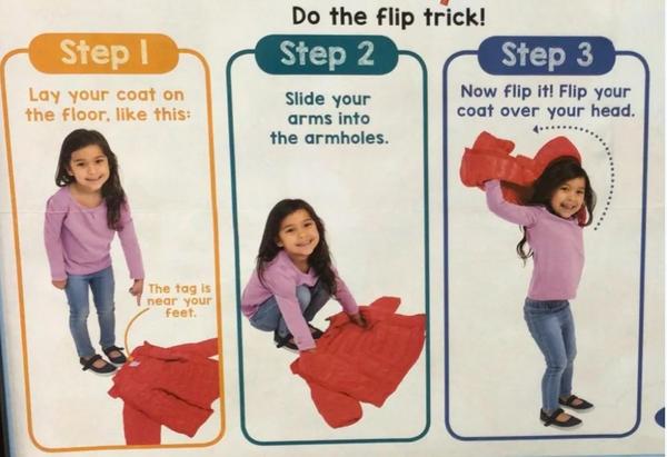 Vetrovky, bundy, mikiny nauc obliekat tak ze si ich polozi na zem pred seba, da ruky do rukavov a prehodi cez hlavu.