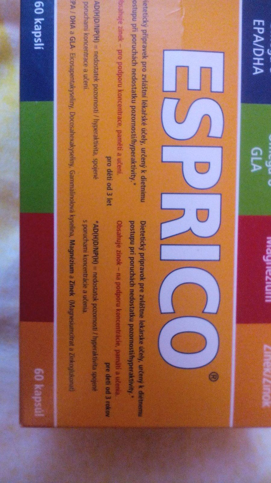 @deti95060810 Esprico nie je liek ake dieteticky pripravoj s Omega-3 EPA/DHA, Omega-6 GLA, Magnezion a zinko . Odporucila mi ho neurologicka. Tiapridal je silne neuroleptikum, psychofarmakum, ktore sa predpisuje starym ludom na demenciu, podla pribaloveho letaku. Moze mu to zhorsit alergiu, je astmatik, moze zhorsit az zastavit dychanie. Tento tyzden syn zacal Tiapridal pol tablety vecer uzivat po schvaleni pedopsychiatrickou. Je po nom utapeny, cely den je unaveny. Skus si ten Tiapridal 100 najst co to je za liek.