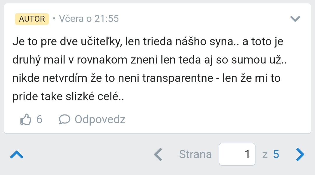 @jozko_z_lesa no nezavidim neviem preco by som mala…. 50€ pre mna nie je zavidenia hodne… A viem aj co vsetko tato praca obnasa a viem aj ako sa pohybuju platy a napriek tomu si myslim, ze je uz cez ciaru obdarovavat ucitelky v ms ako polobohov. Ak ai myslis, ze su take skvele a zasluzia si od rodicov 13 plat tak prosim daj im jeden svoj mesacny a este sa tam poser z toho aku maju tazku pracu a ake su skvele 🤦🏻♀️ vazit si niekoho neznamena, ze budem suhlasit z kazdou sprostostou cez ciaru.