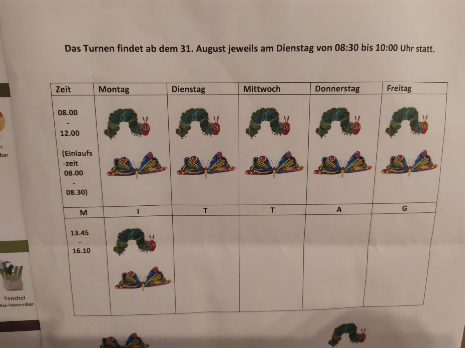 Pridávam foto rozpis môjho syna, škôlka bez stravy, desiatu si musia nosiť sebou, takže doma sa stravujú. Tam dostanú akurát tak vodu na pitie.