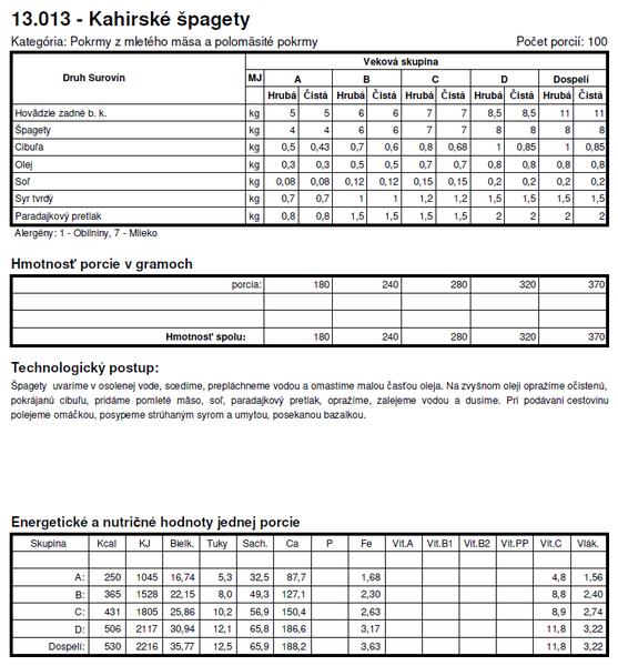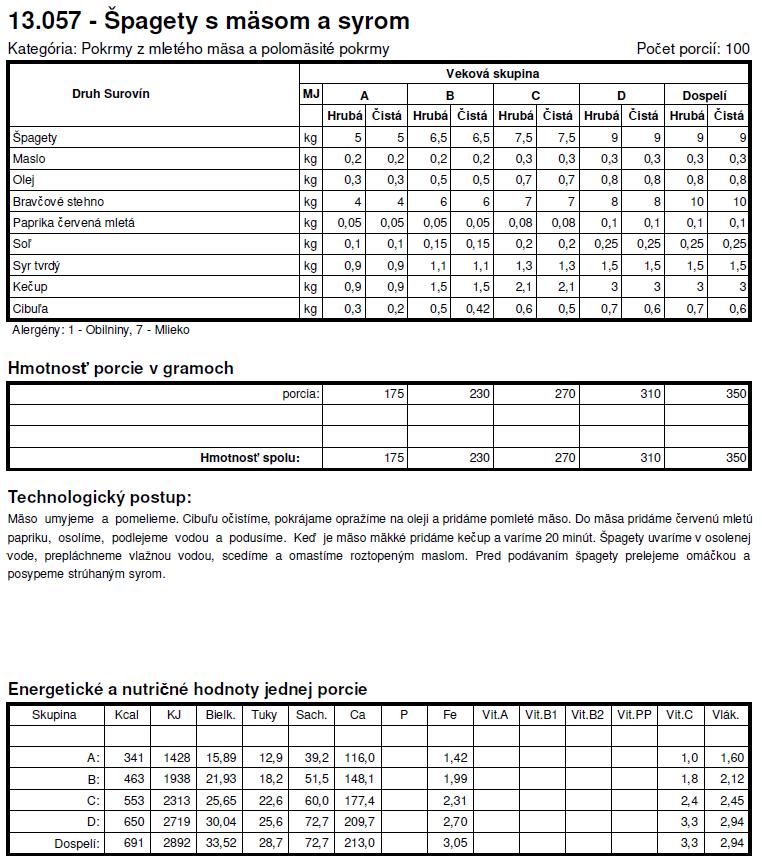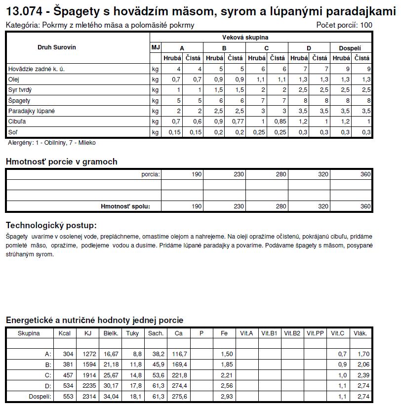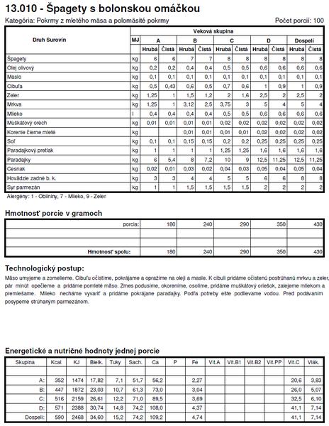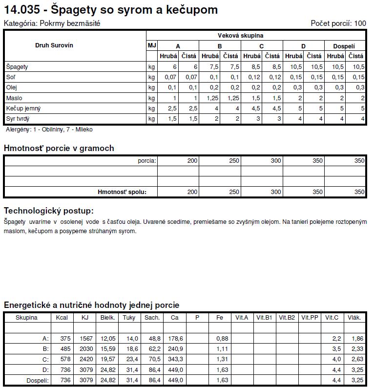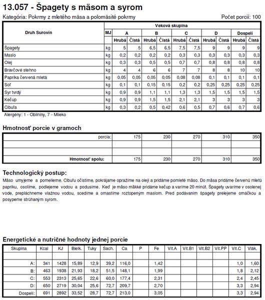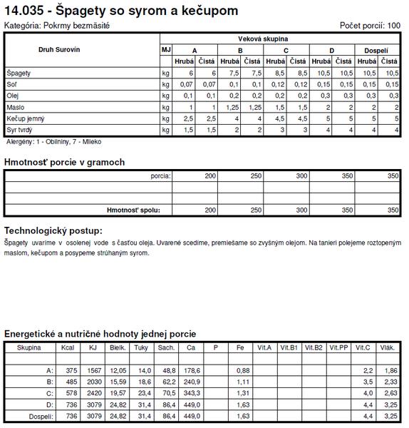 Tie normy su z roku X tak sa nemozes cudovat. To bol jeden z dovodov preco som deti nedala do statnej skolky a nastastie v skole si mozu vyberat z dvoch obedov. Spagety + kecup je za mna vyzivova hodnota nula, ide len o zaplnenie zaludka, takisto sladke jedla - to pre nna nie je obed.