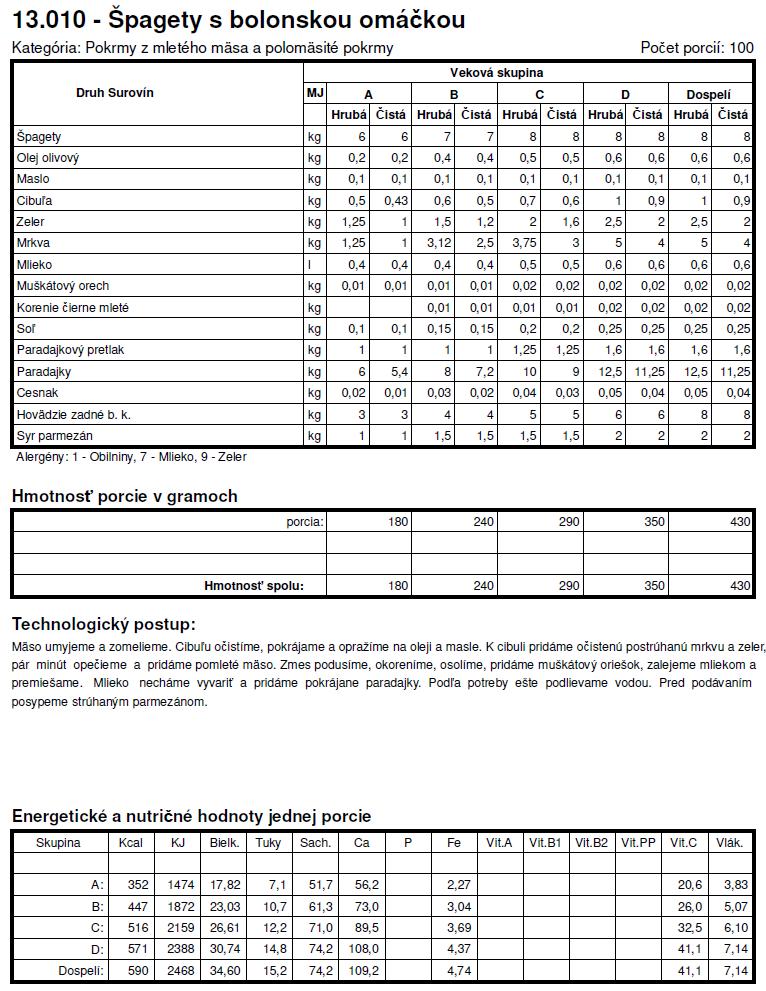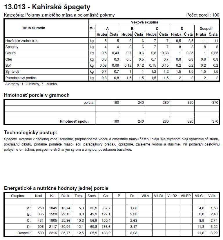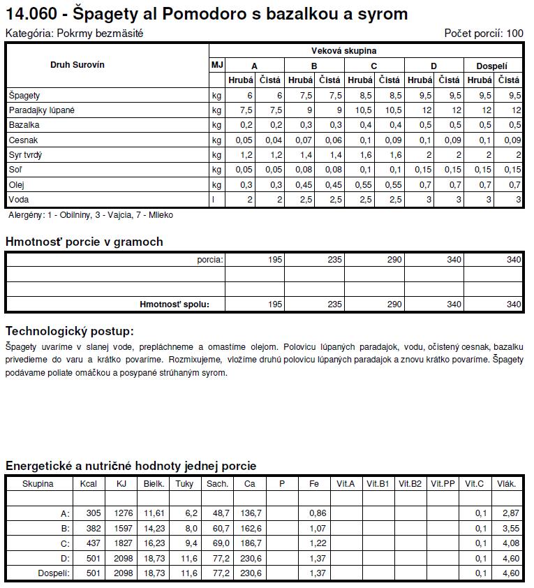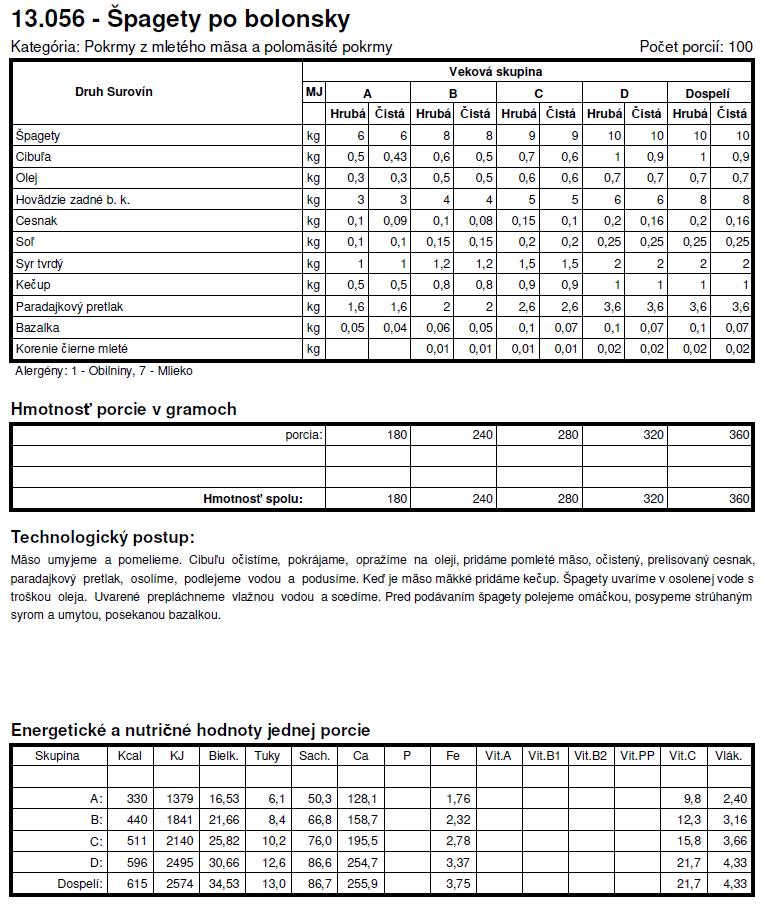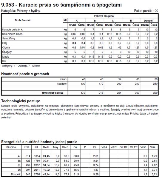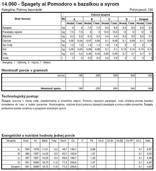 Tie normy su z roku X tak sa nemozes cudovat. To bol jeden z dovodov preco som deti nedala do statnej skolky a nastastie v skole si mozu vyberat z dvoch obedov. Spagety + kecup je za mna vyzivova hodnota nula, ide len o zaplnenie zaludka, takisto sladke jedla - to pre nna nie je obed.