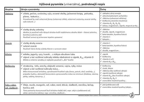 Pre úplnosť prikladám ešte pomôcku - je ladená univerzálne, čiže aj pre ľudí, ktorí jedia mäso, aj pre vegetariánov. Dôležité je si všimnúť, že každá skupina potravín nám poskytuje určité látky. Tie je potrebné zabezpečiť. Pre porovnanie tiež prikladám súhrn najnovších odporúčaní pre výživu USA 2015 - 2020: