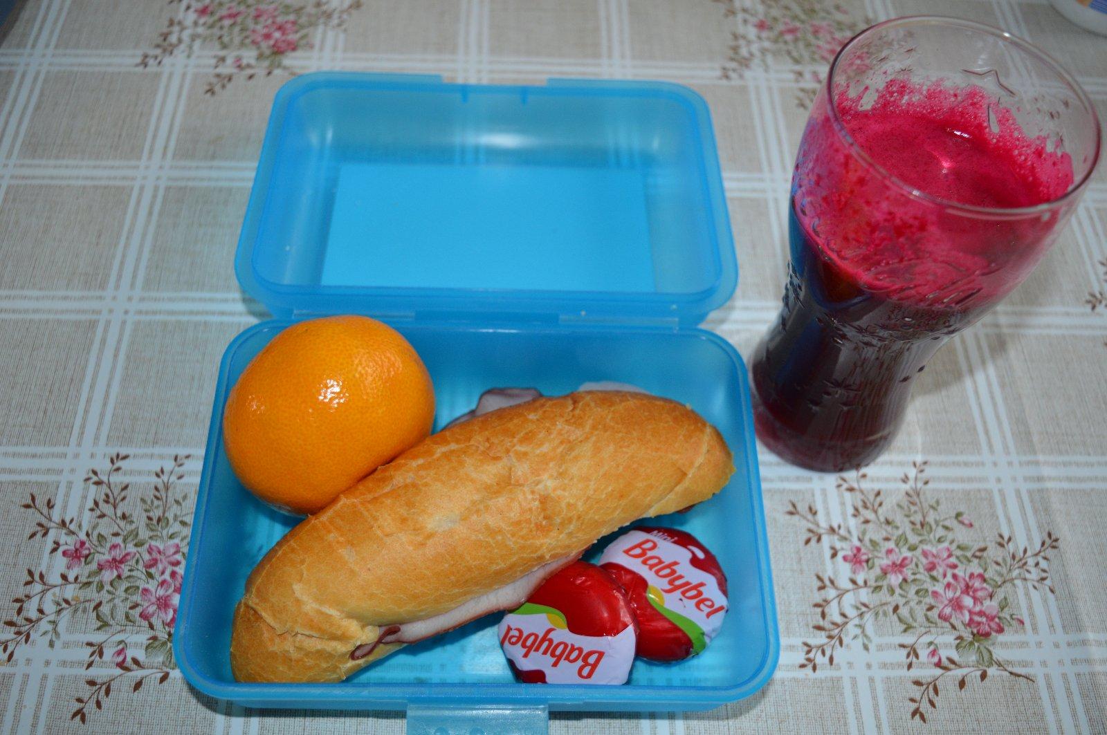 Najčastejšie máme rožok so šunkou alebo syrom a zeleninkou, ovocie a nesmie chýbať ani miniparenička alebo Babybel a do flaše pôjde šťava z cvikly, jabĺčka a pomaranča.
