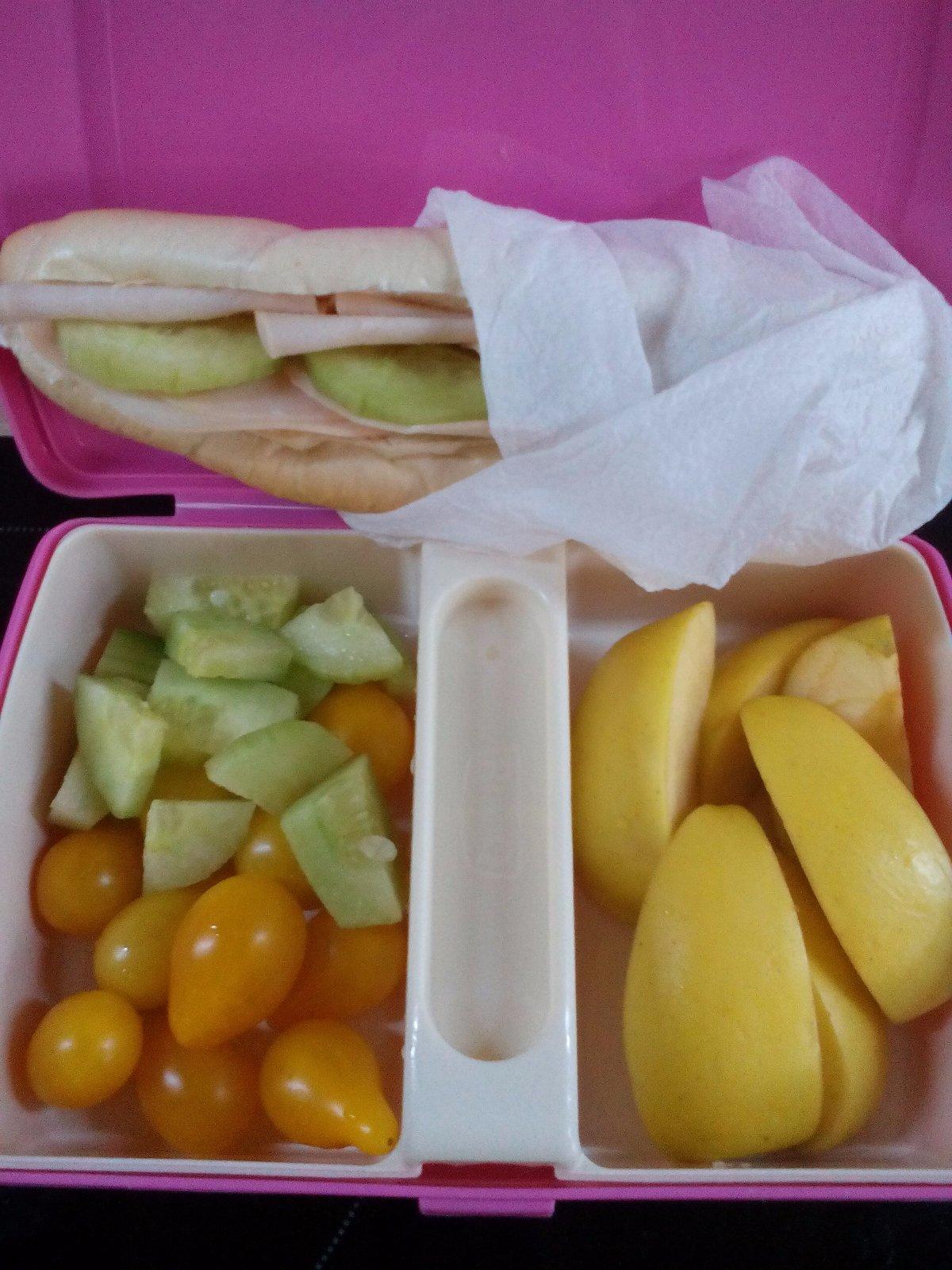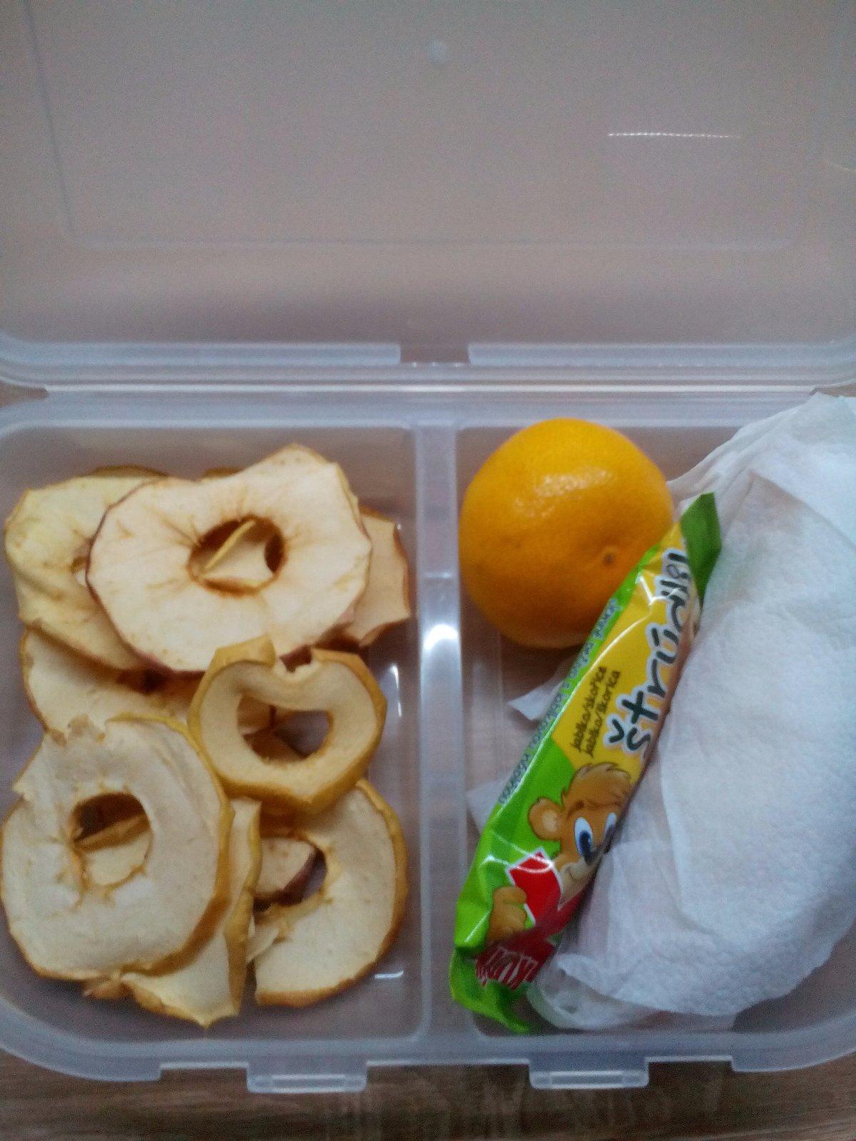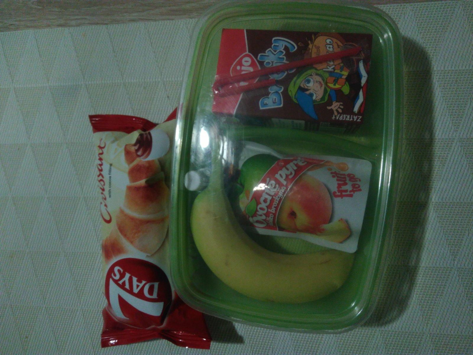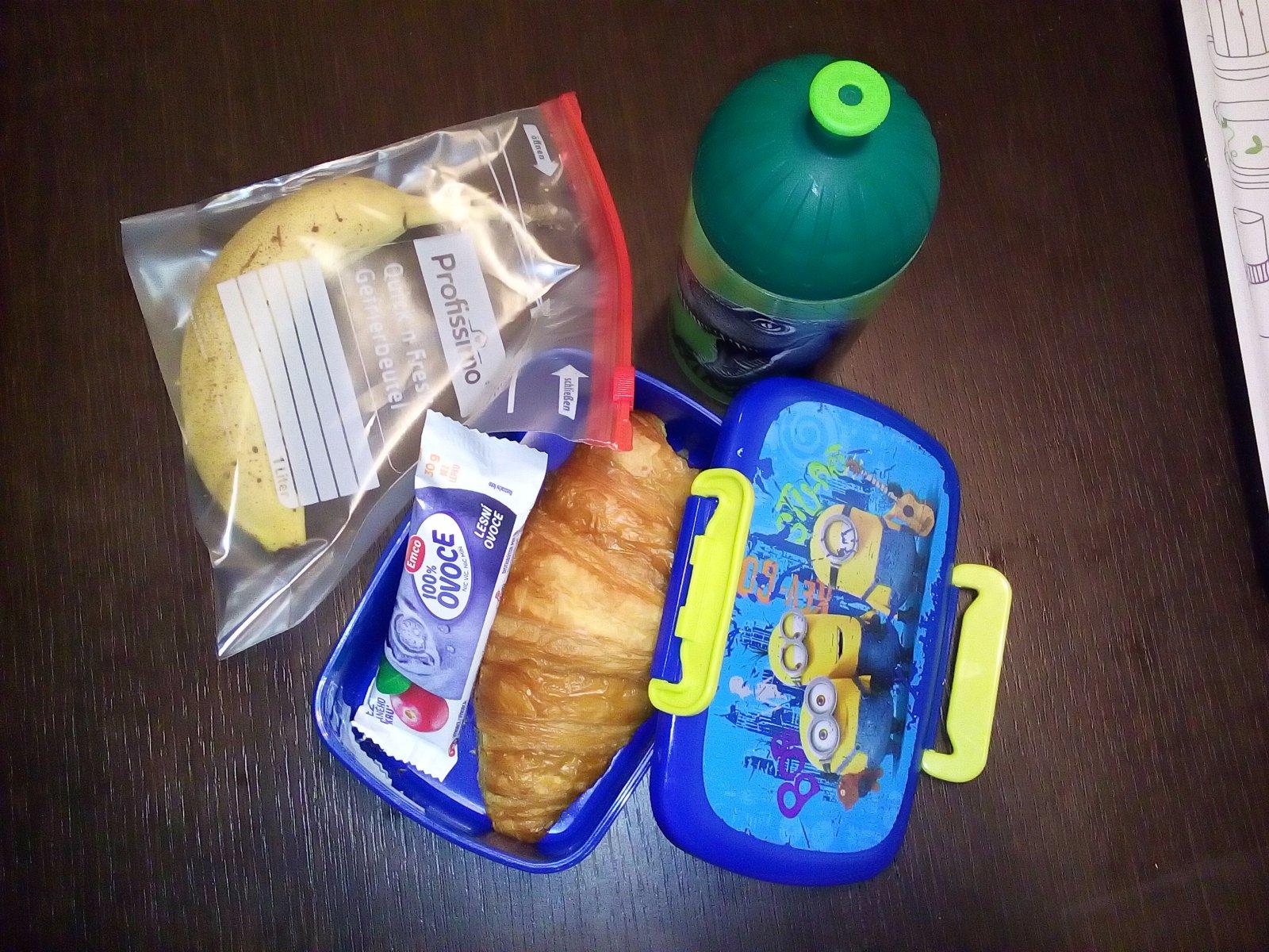 Súťaž som si všimla až teraz, tak nemám žiadne foto :( ale naša desiata vždy obsahuje celozrnné pečivo so šunkou, či domácim džemíkom, nesladený čajík, ovocie a ak je tak aj kúsok domáceho koláčika. Boxík by nás veľmi potešil.