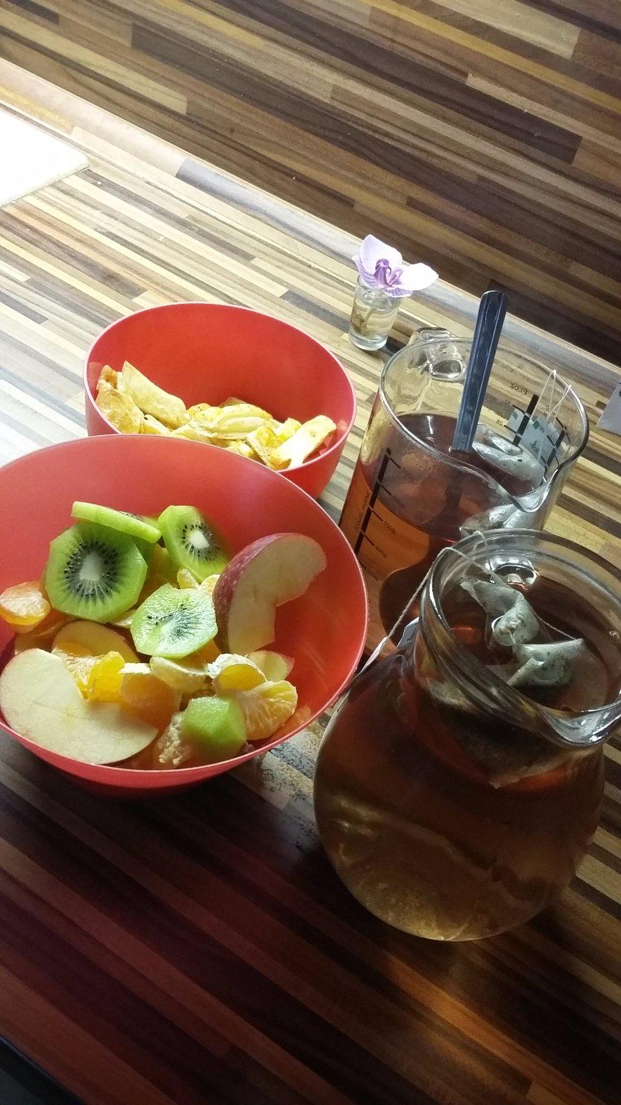 My sme nali dnes desiatu takuto, neskoro vstavali,tak je taka odlahcena, chori su a toto je jedno z mala,co do nich dostanem 😉 ovocicko (jablko,mandarinky,kivi) a spravili sme si svoje listkove palicky s domacim kecupom a litre caju. No tento tyzden to moc na inu desiatu ani nevidim