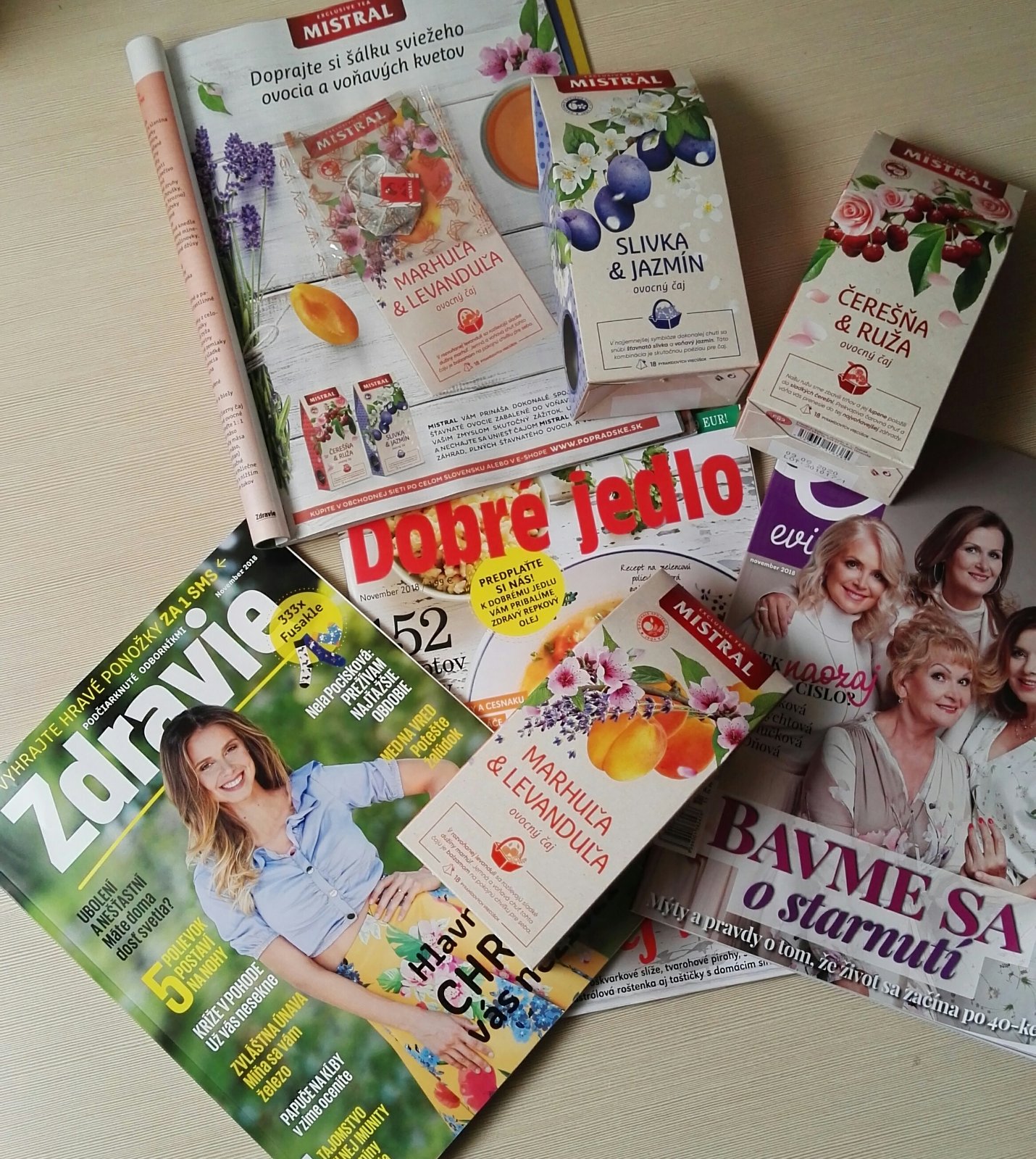 Krásny večer milé dievčatá. Čítate nejaké časopisy? Dajte nám vedieť, ktorý je Váš najobľúbenejší😊 Čajík Mistral - konkrétne Marhuľa Levanduľa vo forme vlepenej vzorky nájdete v nových číslach týchto časopisov: Dobré jedlo, Evita, Zdravie, Madam Eva. Tak ak je niektorý Váš obľúbený, nájdete si v ňom aj čajík Mistral. Krásnu sobotu ešte😊
