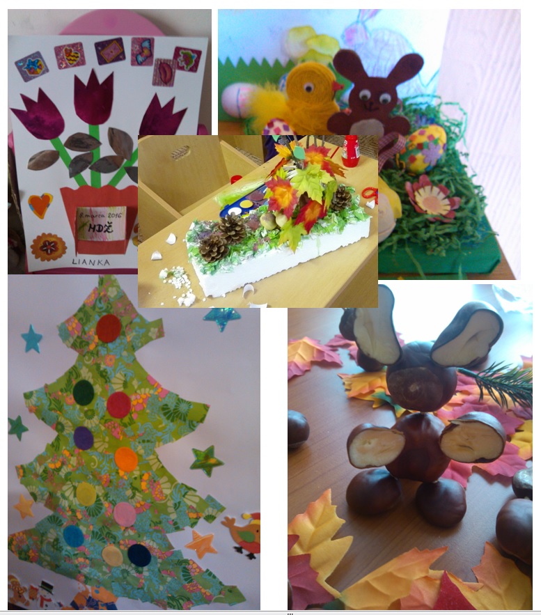 Rada tvorím s deťmi, motivujem ich zároveň, vymýšľame, učíme sa - pri postavách orgány a zároveň ich ukazujeme na tele, zvieratká, ktoré sa učíme pomenúvať, stromy, kde rozlišujeme, či je ihličnatý alebo listnatý, ich plody. Obdarúvame našimi výtvormi našich najbližších, je to hravé, zábavné i poučné.