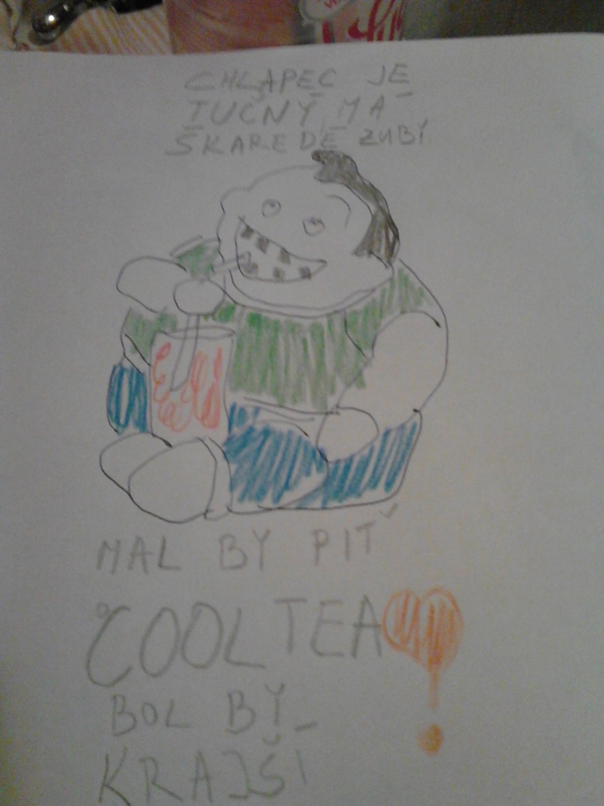 Moje dcérky napísali a vyfarbili obrázok zlého vplyvu sladených nápojov na telo,snáď sa bude páčiť. A tešíme sa či ešte nejaké súťaž bude? o cool letný zážitok to nevyšlo,a nejaká cool cena by dcérky v takom horúcom dni potešila, jasné, že čajíky sú super, ale... 🙂 🙂 🙂 nejaký tajný darček..