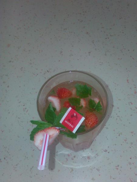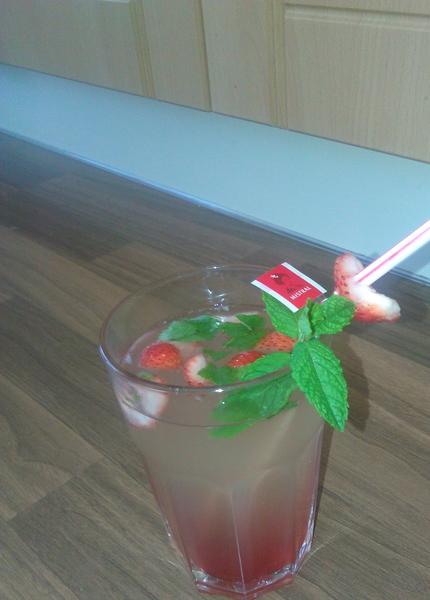 Cooltea s príchuťou citróna - také domáce Mochito - vhodné aj pre deti pretože je bez alkoholu 🙂 ochutené s jahodami, medovkou a jahodovým sirupom