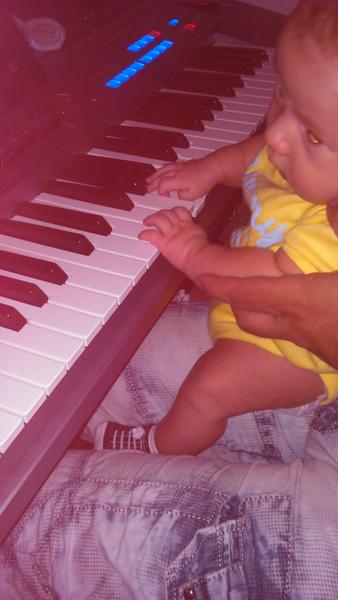 @danonino_lucia Náš Adamko má skoro 11 mesiacov, ale od malička je veľmi muzikálny, odkedy vedel otočiť hlavičku, otočil hu hneď ako začul hudbu a začal sa usmievať, neskôr keď už vedel chytať veci du rúčky, začal trieskať do otočených hrncov, nádob a čohokoľvek čo sa dá obrátiť hore dnom 😀 (to mu ostalo do teraz) keďže náš tatko hrá na gitaru a máme ich doma požehnane, tak dostal svoju malú gitarku aj náš Adamko, ešte ju síce nevie správne držať, ale brnkať vie aj na tú svoju a aj na tie tatkove, no a na flautu sa naučil "hrať" sám, keď do nej jedného dňa náhodou fúkol a zľakol sa zvuku, ktorý vytvoril, od vtedy do nej fúka pravidelne a veľmi rád 😀 Okrem toho je to veľký tanečník a rytmus má v tele ozaj od malička, tancuje len čo začuje hudbu, alebo nejaký zvuk...dokonca tancuje aj na zvuk práčky 😀 U nás niečo hrá celé dni, namiesto tv si radšej pustíme platňu, alebo CD na žiadosť Adamka (ktorý sa postavý k CD prehrávaču, tancuje a kričí DBAAA (v preklade- hudba) Je to náš malý hudobník...možno aj preto, že my s manželom radi a veľa počúvame kvalitnú hudbu a náš Adamko tak začal s jej vnímaním už v brušku 🙂 Prajem pekný deň.